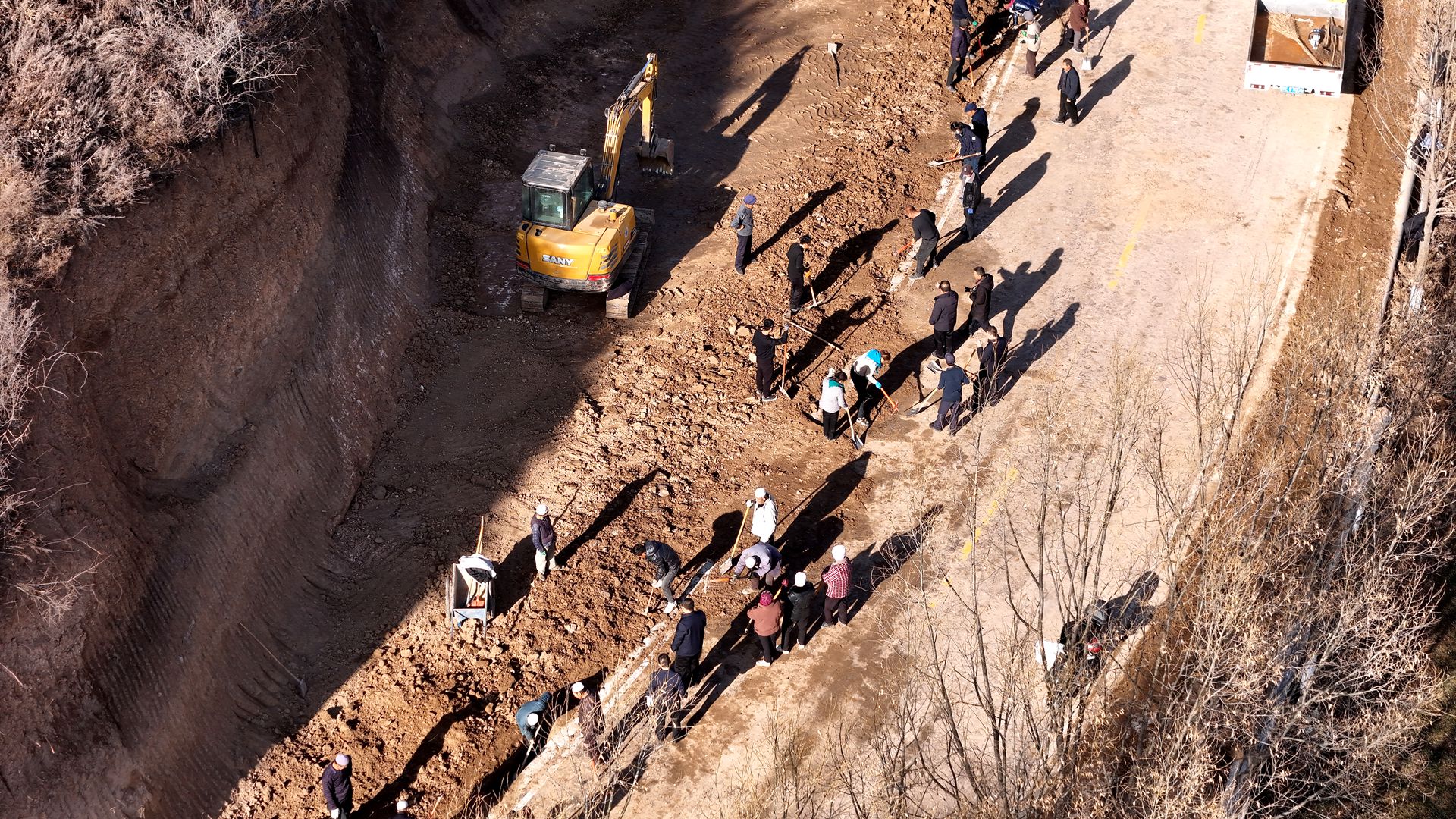 在新城乡蒲魏村的路边,记者看到,高大的挖掘机挥动铁臂,对边坡进行精准修整;铲车来回穿梭,将杂物与多余土方快速清运。村民也干劲十足,他们或俯身清理沟渠淤泥杂草,确保排水通畅;或挥舞铁锹仔细平整、夯实路肩,勾勒出清晰流畅的公路轮廓。现场机声隆隆,一派繁忙景象。