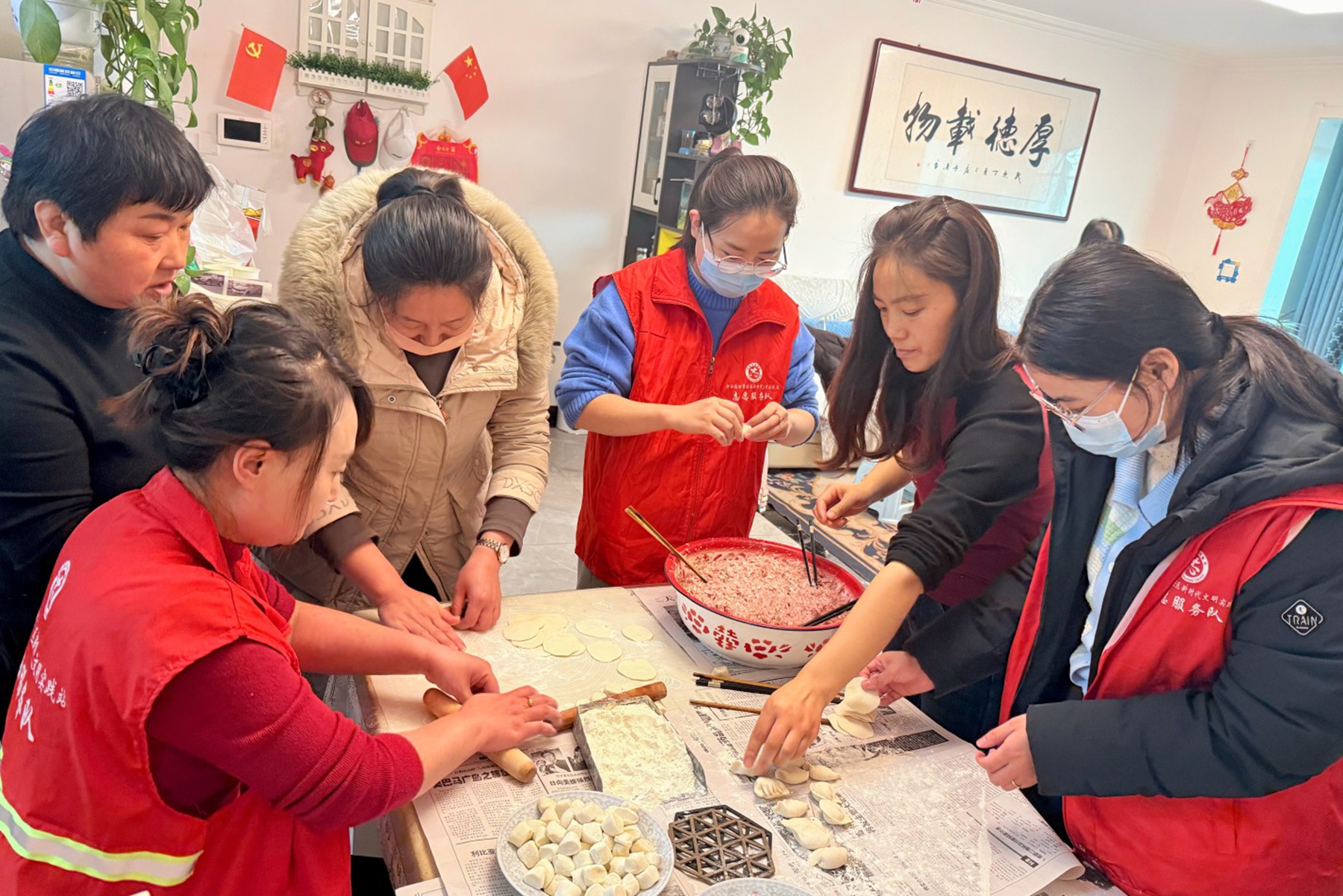 一只只圆润饱满的饺子整齐排列,既包裹着鲜香馅料,更凝聚着邻里和睦的真挚情谊,氤氲出浓厚的社区温暖氛围。