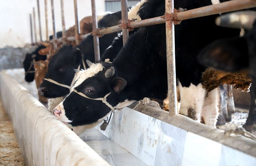 走进永清镇苏屲村,一排排养殖厂房一栋连着一栋,整齐排列在田间地头,蓝白相间的外墙在阳光下格外醒目。厂房内,青贮饲料堆放整齐。在邓会亮的养牛场里,工人手持草料叉,将秸秆饲料均匀撒入食槽,随后拧开水管,清澈的水流缓缓注入饮水槽,成群的肉牛低头进食、饮水,不时发出低沉的哞叫,构成一幅生机勃勃的养殖画卷。