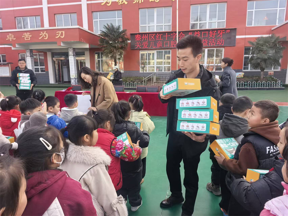 新天水讯 据秦州区融媒体中心消息 为了切实守护儿童口腔健康,日前,秦州区红十字会联合松鼠口腔、兔博士口腔,在秦州区东十里小学开展“益口好牙”关爱儿童口腔健康公益活动。为123名儿童送去口腔护理用品,用公益力量筑牢儿童成长健康防线。