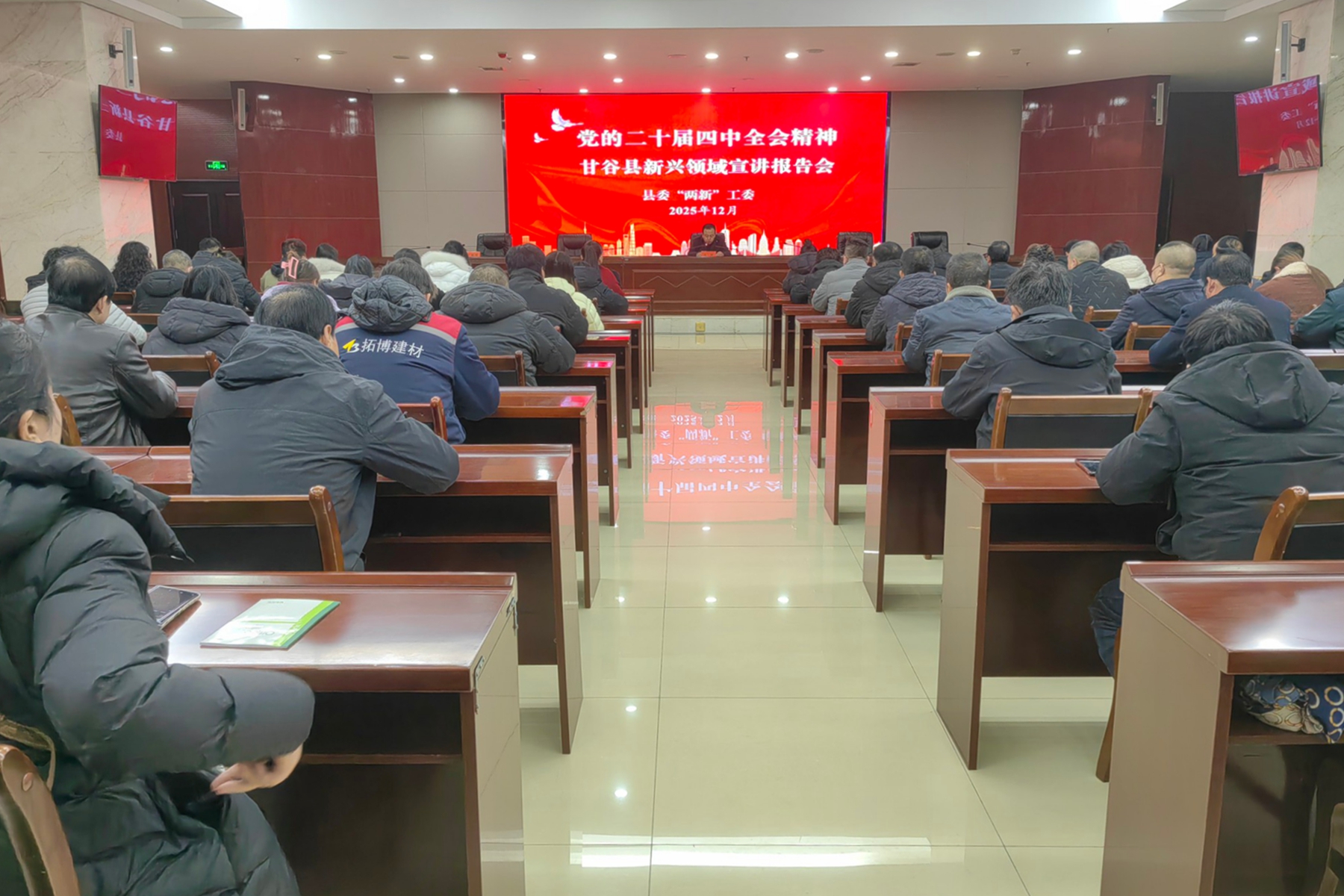 新天水讯 据甘谷县融媒体中心消息 12月23日,县委社会工作部组织召开全县新兴领域学习贯彻党的二十届四中全会精神宣讲报告会。县委社会工作部部长、县委“两新”工委书记做专题宣讲报告,4个行业党委分管领导、基层党组织书记等70余人参加。