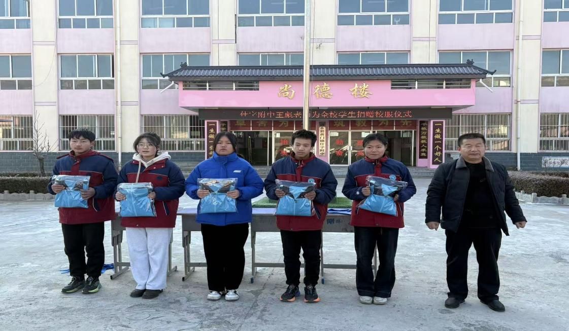 新天水讯 据清水县融媒体中心消息 冬日的清水寒风料峭,黄门镇什字附中的校园里却涌动着融融暖意。近日,该校操场上举行了一场简单而温馨的捐赠仪式,王彪老师自费为全校 42 名学生每人送上一套崭新校服,用质朴的爱心为乡村孩子们筑起了一道冬日的“温暖防线”。