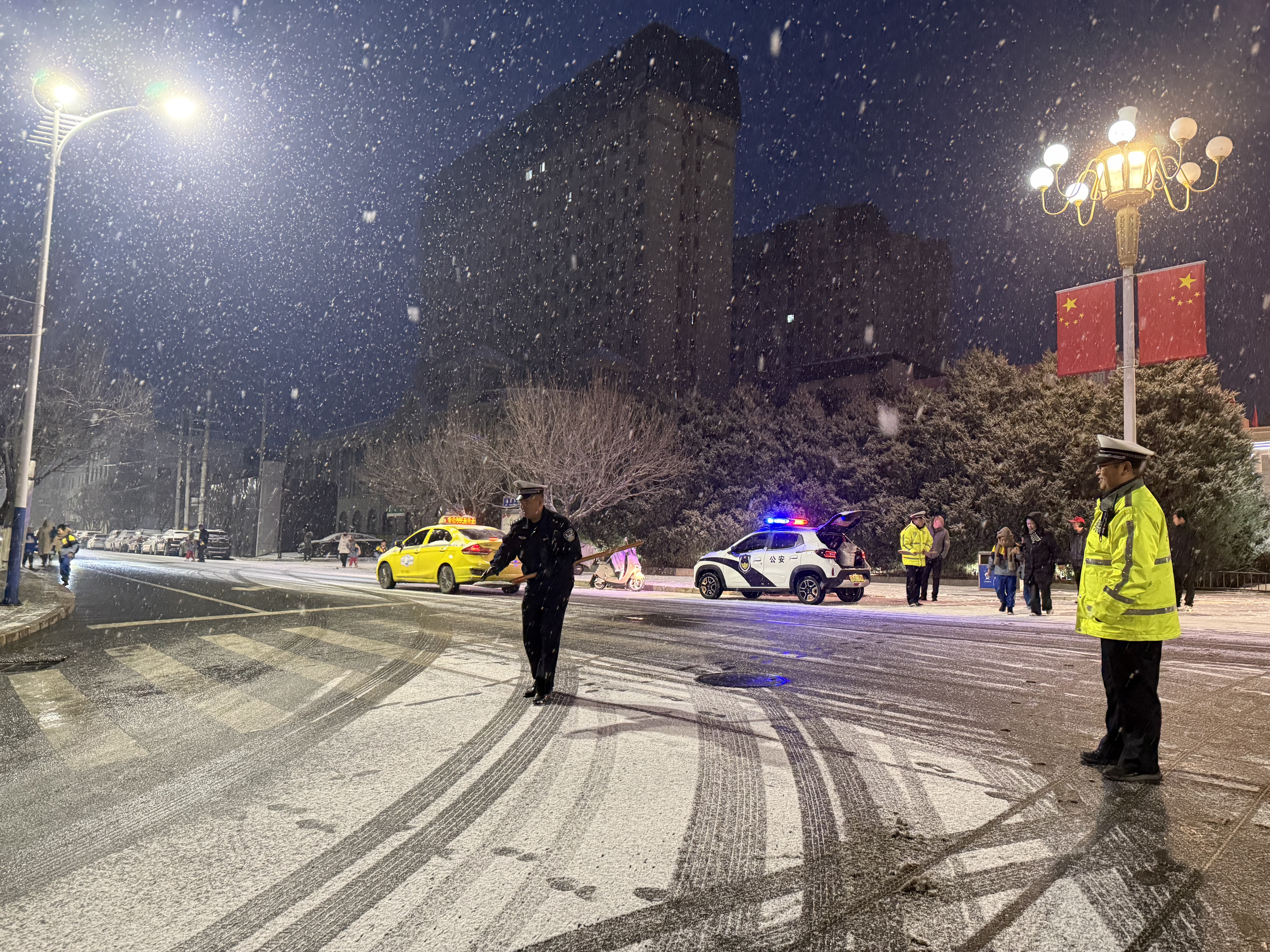 交通部门聚焦城乡主干道、乡村公路等通行要道,组织养护队伍出动清雪车辆、撒布机等设备,对积雪较厚路段进行机械化清扫,同步播撒融雪剂,有效防止路面结冰;公安交警部门组织警力在重点路口、易滑路段设置警示标识,疏导交通流量,提醒过往车辆减速慢行,同时对受困车辆进行救援,保障道路通行秩序;城管部门针对城区主次干道、商圈周边、学校医院门口等人员密集区域,组织工作人员开展人工清扫,清除路面积雪和积冰。