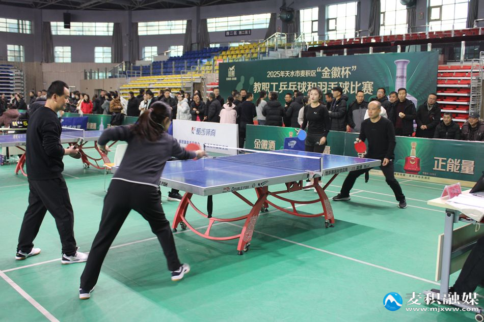 新天水讯 据麦积区融媒体中心消息 元旦前夕,麦积区举办“金徽杯”迎新年教职工运动会。来自全区教育系统的46支乒乓球队、29支羽毛球队近400名教职工参加比赛,在运动中喜迎新年。
