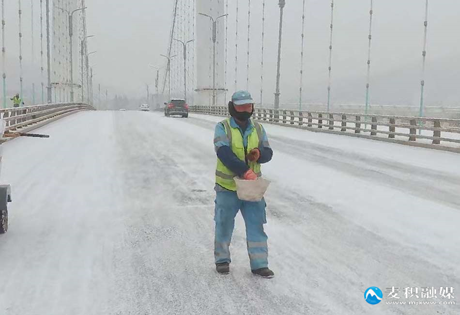 “针对桥梁、人行天桥等易结冰路段,我们优先调配融雪作业车辆和人力,采用‘先重点后一般、先桥梁后道路’的作业策略,确保关键点位通行安全。”天水京环公司麦积作业中心负责人丁力介绍,此次作业共使用融雪剂10余吨,通过机械与人工的高效协同配合,实现了重点区域积雪快速消融、道路安全畅通的良好效果。