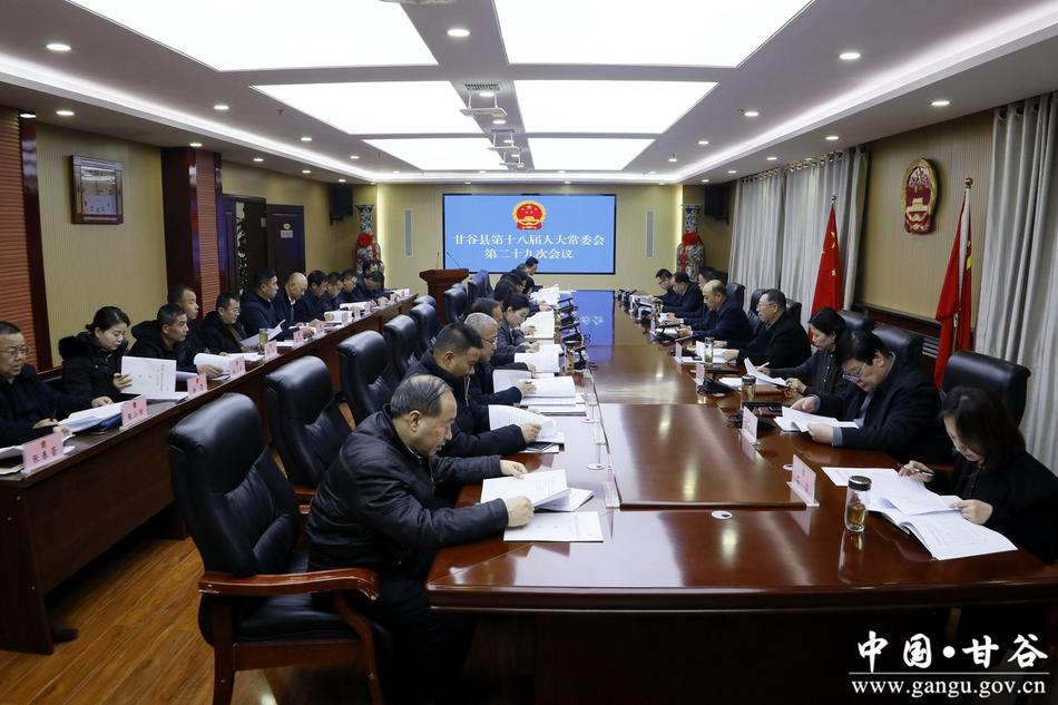 新天水讯 据甘谷县融媒体中心 1月4日,甘谷县第十八届人大常委会召开第二十九次会议。县人大常委会主任于旭峰、副主任魏杰分别主持第一次和第二次全体会议。县人大常委会副主任陈旭、杨晓涛、张世诚、董宝玉出席会议。副县长杨亮,县人民法院院长石岚,县人民检察院检察长邵新建列席会议。