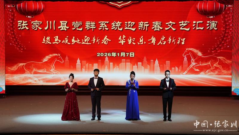 新天水讯 据张家川县融媒体中心消息 “骏马疾驰迎新春,华彩乐章启新程”,1月7日晚,张家川县党群系统2026年迎新春文艺汇演在县影视中心精彩上演。演出以喜庆热烈、气韵恢宏的旋律,为迎接新年的到来奏响华美乐章、献上视听盛宴。出席县“两会”的代表委员与全县各族干部群众欢聚一堂,共同观看了演出。