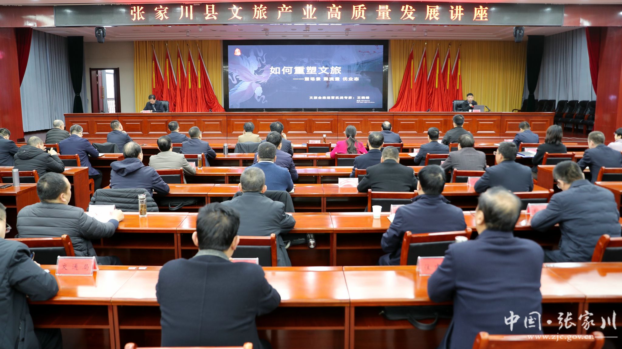 讲座中,王晓峰聚焦“如何重塑文旅”主题,围绕塑场景、聚流量、优业态等关键,从六个方面系统阐述了新时代文旅产业高质量发展的趋势与逻辑,深度解读了政策导向与市场规律,并通过国内成功文旅产业发展典型案例的剖析,生动展示了文旅品牌塑造、产品创新、业态融合、运营提升的有效路径与方法。同时,结合前期调研和县情实际,对张家川文旅资源的禀赋价值、发展瓶颈进行了深入分析,并提出了富有建设性的意见和建议。讲座内容丰富、启发性强,为加快推动张家川文旅产业高质量发展提供了精准指导。