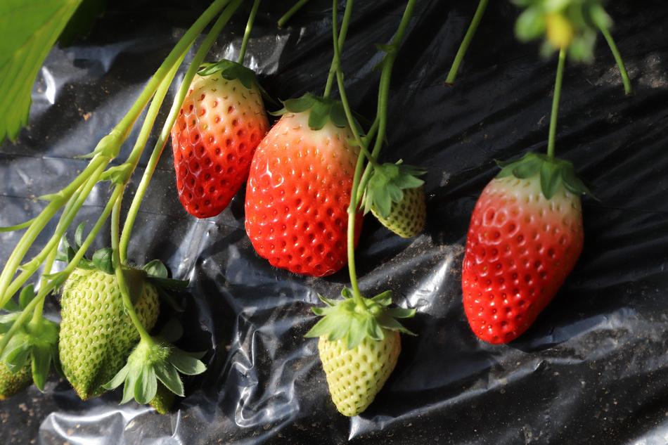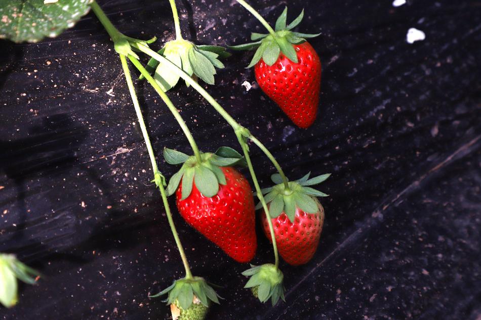 作为滩歌镇特色农业提质升级的重点项目,漆庄村立足地理气候优势,依托中央邮储银行定点帮扶资金与设施农业蔬菜建设项目支持,创新推行“党支部+合作社+基地+农户”联农带农模式,大力发展高效设施农业。今年以来,村里完成25座冬暖棚提升改造,其中7座大棚重点种植草莓,引入红颜、章姬等优质品种,同时配套精准滴灌、智能控温等现代化种植技术。种植过程中全程采用人工除草、蜜蜂授粉的绿色培育方式,从源头上保障草莓品质,培育出奶香味、脆甜味、原味原生态三种风味的草莓,满足不同游客的味蕾需求。