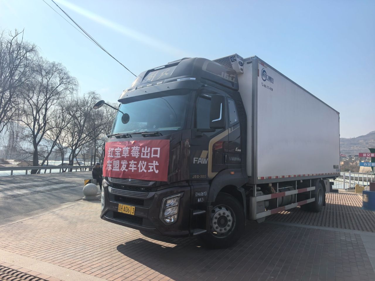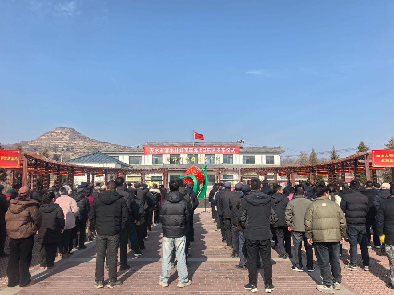 新天水讯 据清水县融媒体中心消息 1月13日,红堡镇草莓小镇热闹非凡、喜气洋洋,“红宝草莓”出口东盟发车仪式在此隆重举行,一箱箱鲜嫩欲滴的草莓整齐装车,即将漂洋过海,开启远销东盟的甜蜜之旅。