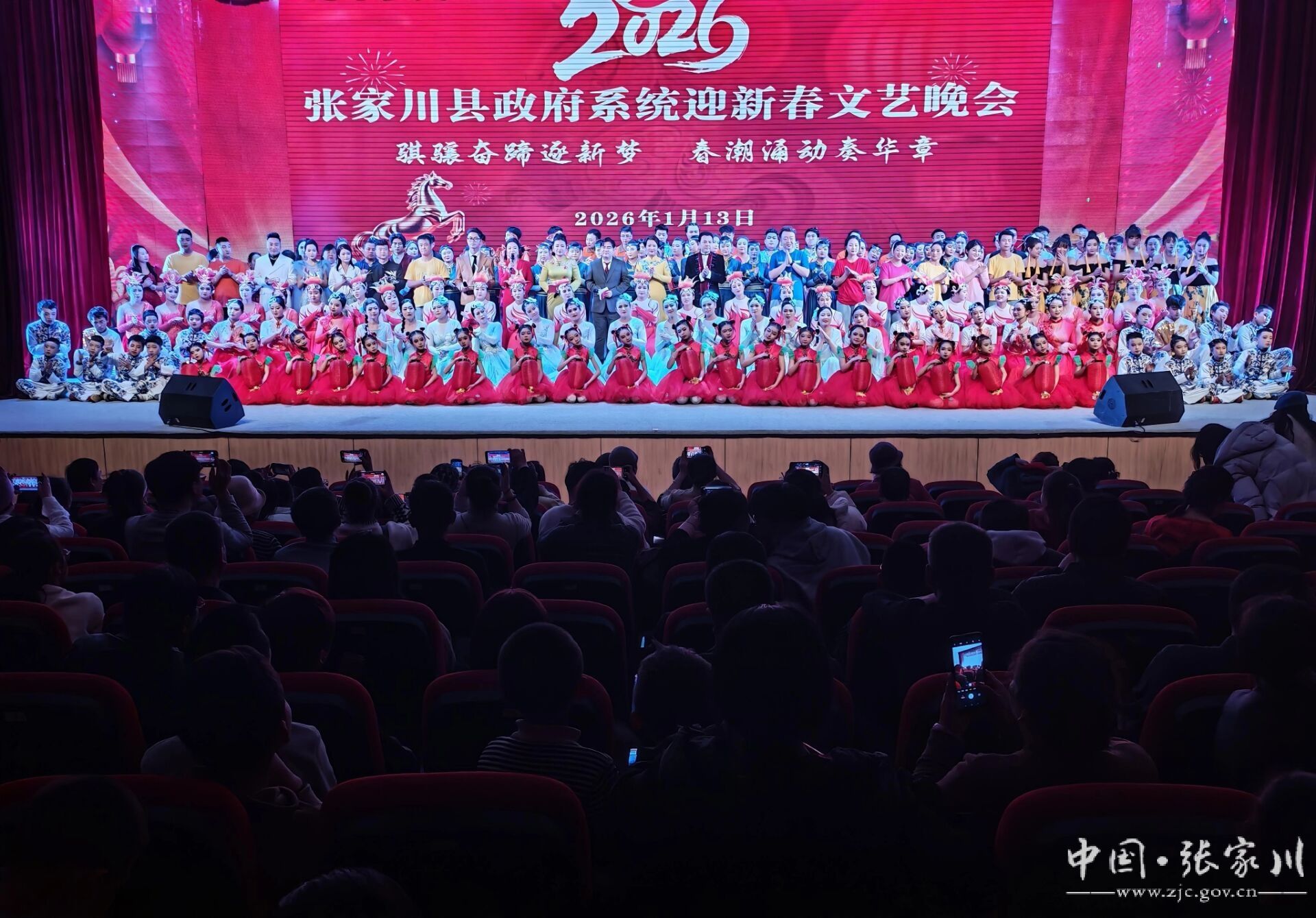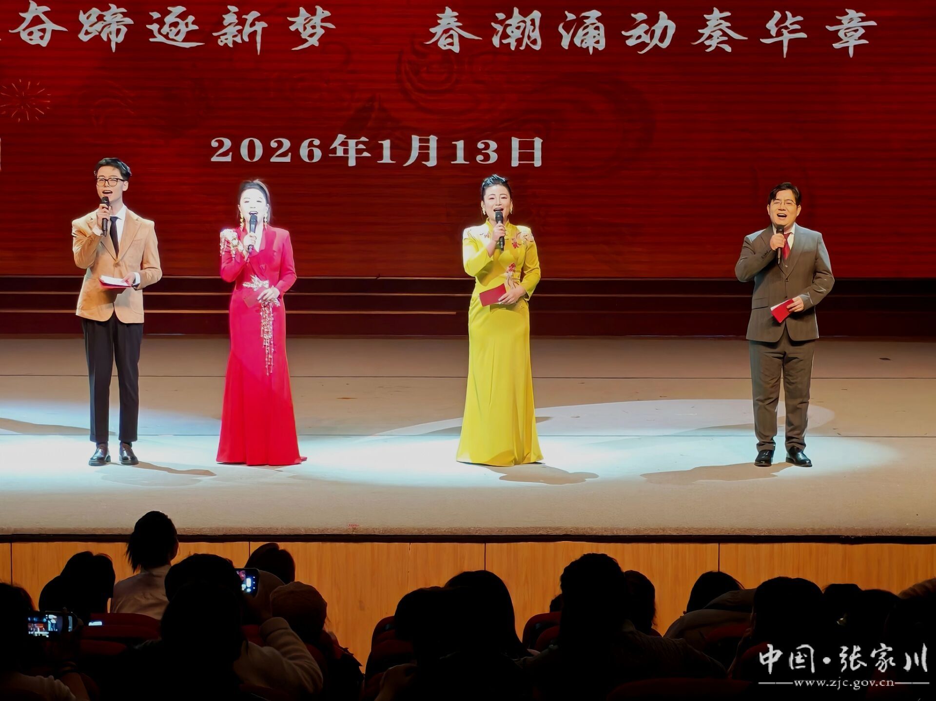 新天水讯 据张家川县融媒体中心消息“骐骧奋蹄逐新梦,春潮涌动奏华章”。1月13日晚,张家川县政府系统2026年迎新春文艺汇演在县影视中心精彩上演。演出以喜庆热烈、气韵恢宏的旋律,为迎接新年的到来奏响华美乐章、献上视听盛宴,现场座无虚席,干部职工与群众欢聚一堂,共赏精彩演出、共话新春愿景。