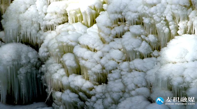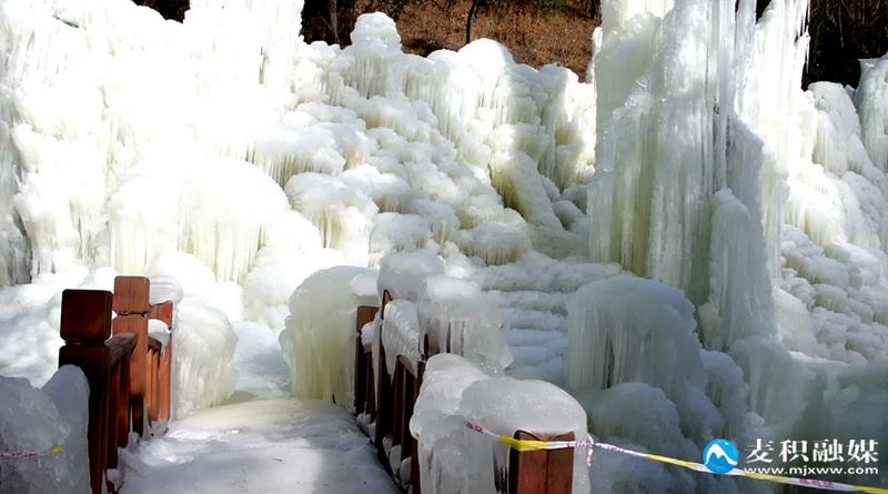 作为麦积山大景区冬季旅游的重要组成部分,仙人崖“冰雪奇缘”景点充分利用仙人湖优质水资源与山间地貌优势,匠心打造了集冰瀑、冰挂、雪地景观于一体的沉浸式冰雪乐园。人工雕琢与自然奇观巧妙融合,形态各异的冰瀑沿山势蜿蜒而下,晶莹剔透的冰挂缀满枝头,共同构成了一幅冬日限定美景。