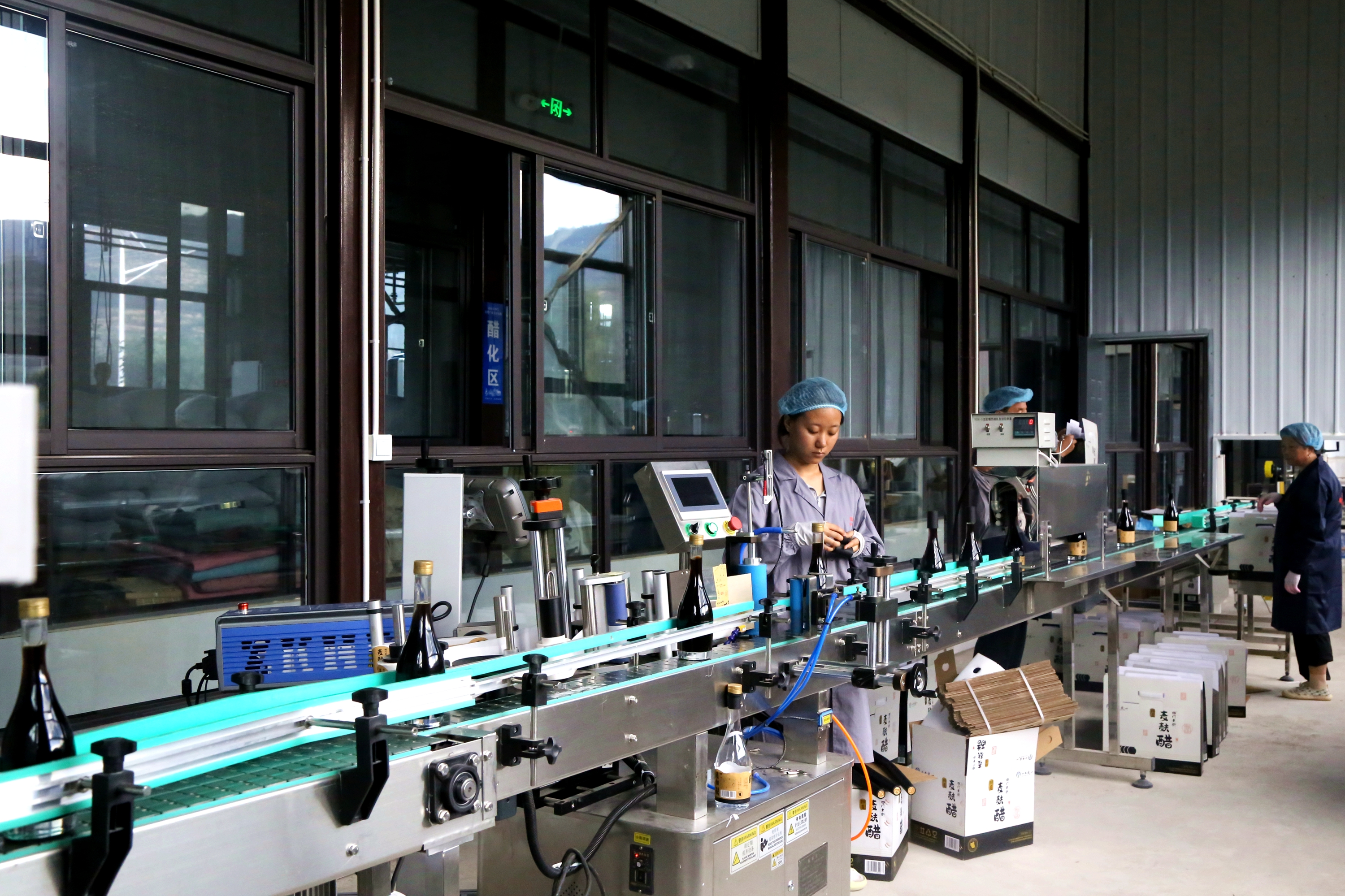 制醋车间里,全自动灌装机平稳运转,工人们贴标、装箱……一派忙碌景象。酿醋师傅汪小荣穿梭于各台设备之间,准点把控每道工艺程序,确保酿出的香醋风味纯正、馥郁醇酸。
