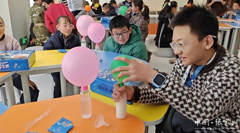 双手触碰原理,实验玩转科学。秉承“科学源于生活,寓于实践”的理念,课堂中将理论化为妙趣横生的动手体验。活动中孩子们在科普辅导老师的带领下,化身“小小科学家”,亲自参与“瓶子吹气球”实验,通过简单的白醋与小苏打反应,让孩子们亲眼见证酸碱中和产生的二氧化碳气体如何让气球凭空鼓起,在惊呼与欢笑中直观理解化学反应的本质。