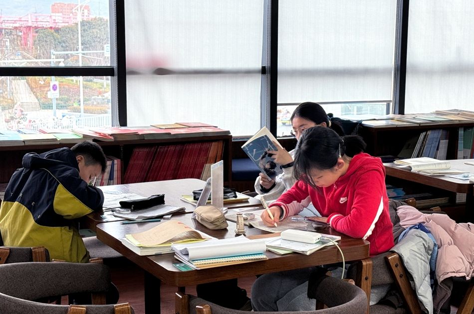 二楼阅览区座无虚席,成为了全年龄段的“读书角”。备战升学考试的大中小学生埋头复习,纸页翻动、笔尖沙沙;成年市民或沉浸于文学历史,或研读专业书籍,在书香中享受静谧时光。“冬天外面冷,书店安静舒适,设施齐全,来这儿看书比在家更好。”市民刘娟的话道出了众多读者的心声。