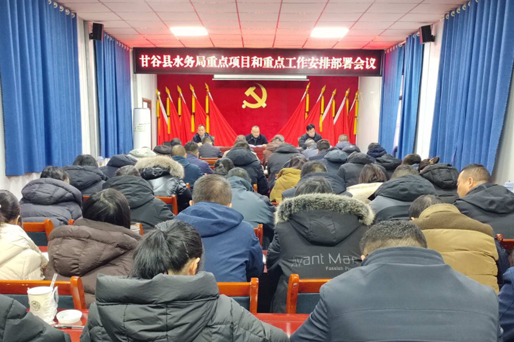 新天水讯 据甘谷县融媒体中心消息 为进一步压实工作责任,统筹抓实各项重点工作落地见效。1月19日,甘谷县水务局召开重点项目和重点工作安排部署会议。局党组成员、科级领导干部、各供水站站长、机关全体干部职工60余人参加会议。