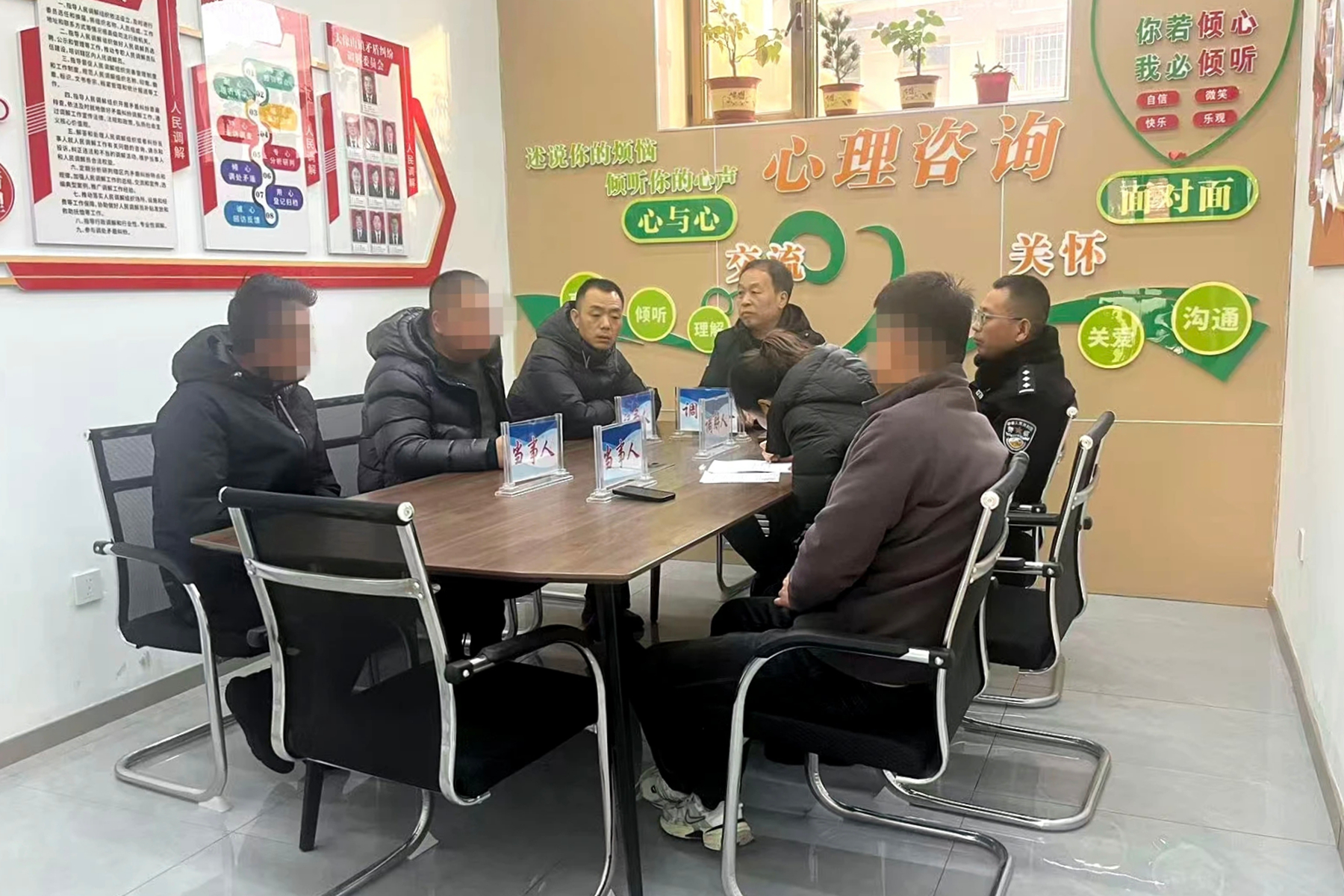 1月16日上午,调解小组在社区会议室组织了一场充满温情的调解会。现场,民警和社区干部化身“和事佬”,耐心倾听双方心声。投诉居民诉说着噪音带来的困扰:“晚上睡不好,孩子学习也受影响……”而涉事业主也道出经营的不易:“生意要维持,设备难免有声音……”调解小组没有简单评判对错,而是从情、理、法多角度入手,为双方搭建沟通的桥梁。经过数小时的细致沟通,最终达成共识。涉事业主承诺缩短营业时间、加装墙面隔音设施、调低设备音量,投诉居民也表达了理解和包容。双方握手言和的那一刻,会议室里洋溢起温暖的笑容,冬日里的寒意仿佛也被这份和谐融化。