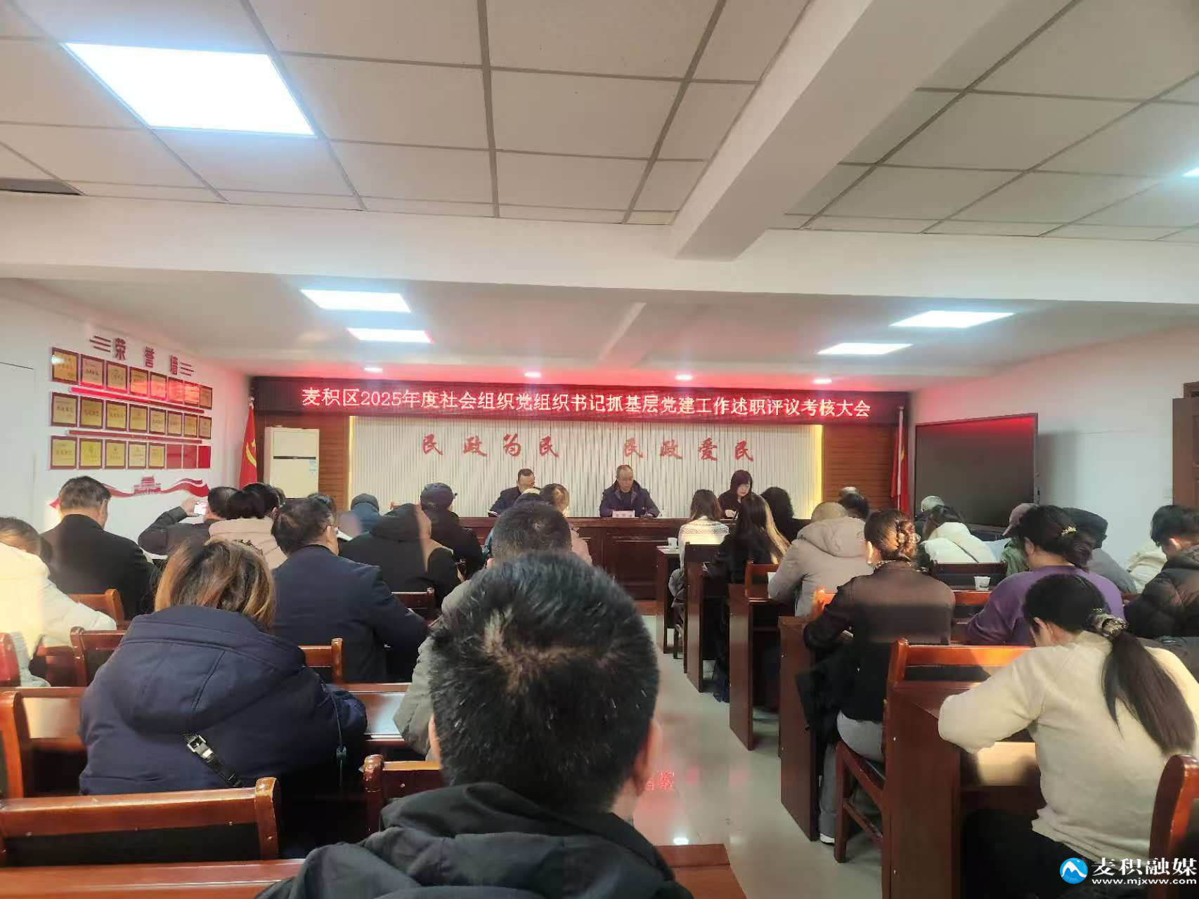 新天水讯 据麦积区融媒体中心消息 近日,麦积区举办2025年度社会组织党组织书记抓基层党建工作述职评议考核会议暨全区社会组织年终总结会议。会议由区社会组织党委书记主持,区民政局党组成员、副局长全面总结2025年全区社会组织工作,统筹部署2026年重点任务,区委社工部分管副部长到会指导,全区各社会组织党支部书记参加会议。
