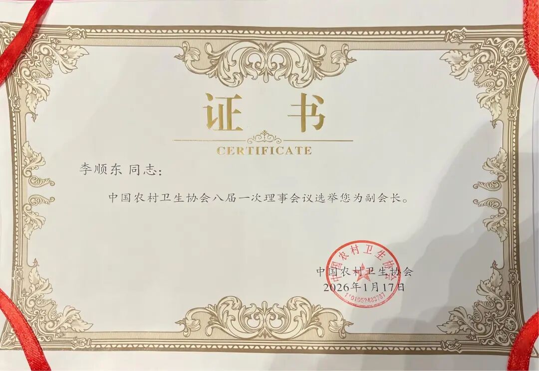 新天水讯 据武山县融媒体中心消息 1月17日,中国农村卫生协会第八次全国会员代表大会在北京胜利召开。经过民主选举的严格程序,我院党支部书记李顺东凭借在农村卫生领域的深厚积淀、突出贡献与广泛行业影响力,顺利当选第八届中国农村卫生协会副会长,续写连任殊荣,再担行业发展重任!