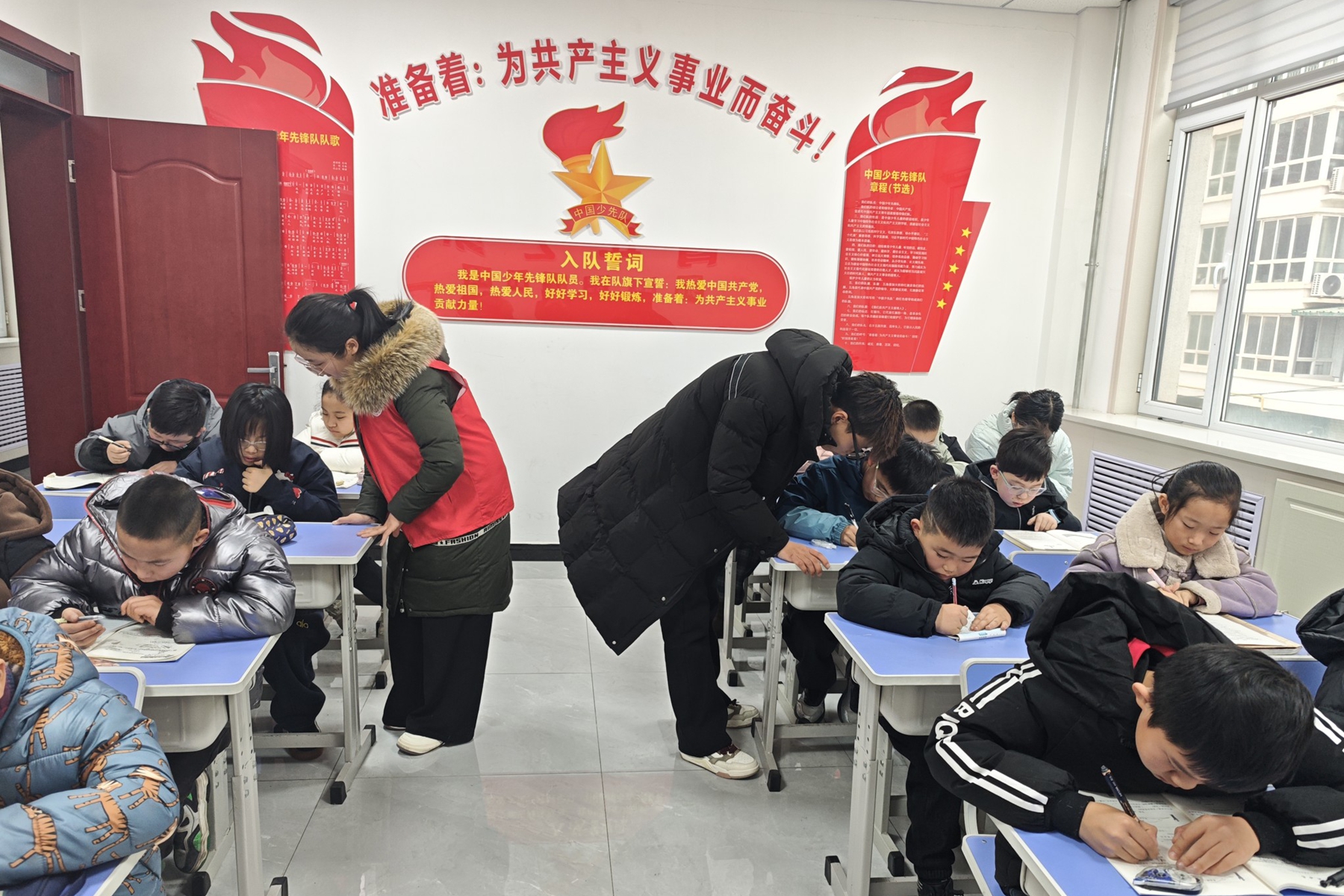 开班首日,孩子们在家长的陪伴下准时来到托管班,在志愿者的引导下完成签到,很快便融入了新环境。课堂上,既有耐心细致的课业辅导,帮助孩子们梳理知识点、解决作业难题;也有丰富多彩的趣味活动,折纸、绘画、科普小实验轮番上阵,孩子们的欢笑声此起彼伏。