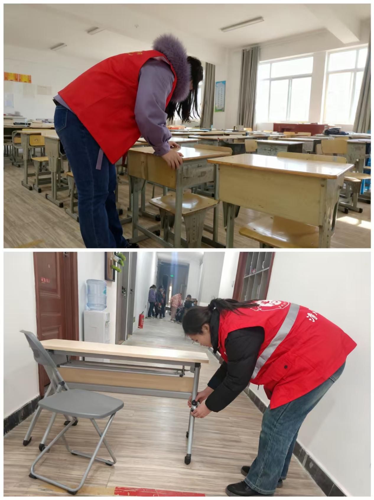 在教学场地检查中,志愿者重点查看课桌椅等教学设施的稳固性:俯身检查课桌椅的螺丝是否松动、边角是否存在尖锐毛刺等安全隐患,避免学生在培训过程中发生磕碰受伤,对存在磨损的设施提醒机构及时维修或更换。