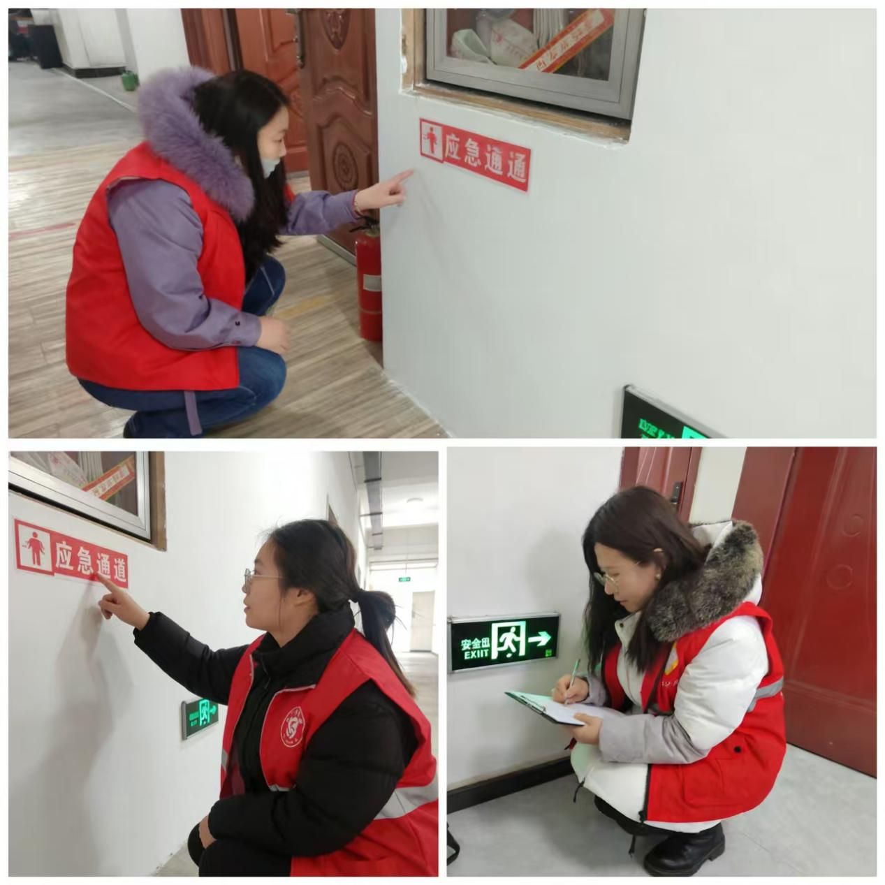 志愿者围绕应急通道“疏散畅通、指引清晰”核心要求开展专项检查:查看“应急通道”“安全出口”等标识文字是否规范准确,有无错别字、破损、褪色情况,安装位置是否醒目,确保疏散指引连续且清晰可见;确认安全出口指示灯、通道应急照明灯是否正常启用,在断电等突发情况下能自动亮起提供照明;查看应急通道内是否堆放杂物、设置障碍物,安全出口门开启方向是否符合疏散要求,有无锁闭、遮挡等影响逃生的情况,确保疏散路径全程畅通无阻。对发现的标识不规范等隐患,当场记录并要求机构限期更换整改。