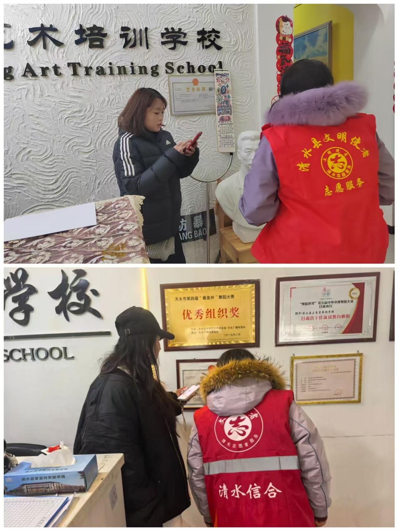 新天水讯 据清水县融媒体中心消息 为切实保障寒假期间校外培训活动安全有序开展,近日,清水县充国社区志愿者,对辖区内校外培训机构开展了专项排查整治行动。