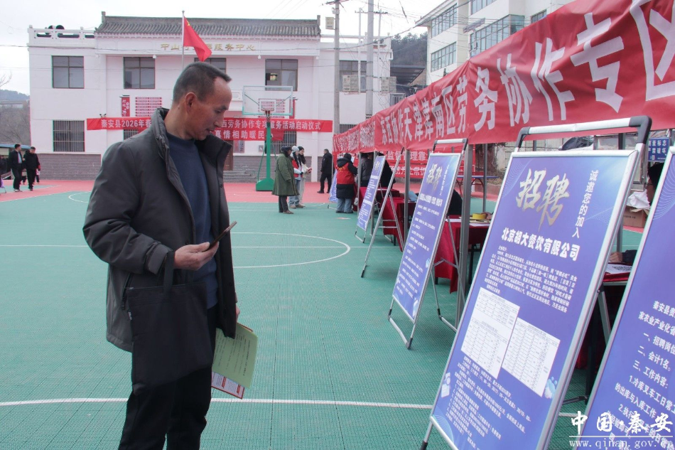 新天水讯 据秦安县融媒体中心消息 2月3日,秦安县2026年春风行动·就业援助季暨东西部劳务协作专项服务活动在中山镇中山村举行。县人大常委会副主任、人社局局长安玉峰,县直相关部门、各乡镇负责人及工作人员,来自省内外用工单位、人力资源服务机构代表,以及中山镇及周边乡镇的求职群众参加活动。