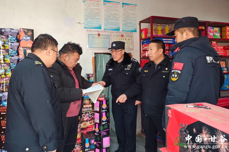 新天水讯 据甘谷县融媒体中心消息 为深入贯彻落实甘谷县2026年元旦春节期间烟花爆竹燃放管控工作部署,进一步规范烟花爆竹经营秩序,全面排查整治各类安全隐患,切实保障人民群众生命财产安全和社会公共安全,2月4日,甘谷县公安局联合县应急管理局、市场监督管理局等相关部门组成联合工作组,在全县范围内集中开展烟花爆竹安全整治专项行动,为群众平安过节保驾护航。