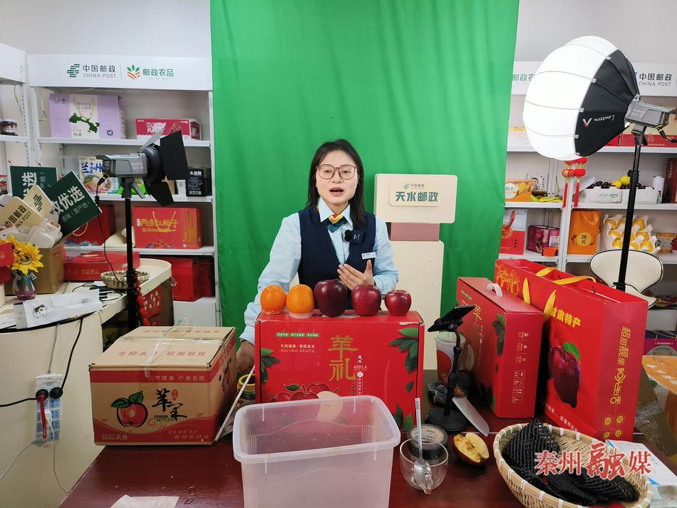 “像现在比较火爆的天水麻辣烫料包,还有甘谷辣椒面等一些产品。2025年全年我们天水邮政抖音直播间GMV也是达到了401.62万元,其中樱桃就销售了150.61万元,2025年第四季度苹果销售了75.84万元的成绩”。中国邮政集团公司天水市分公司主播王瑞说。