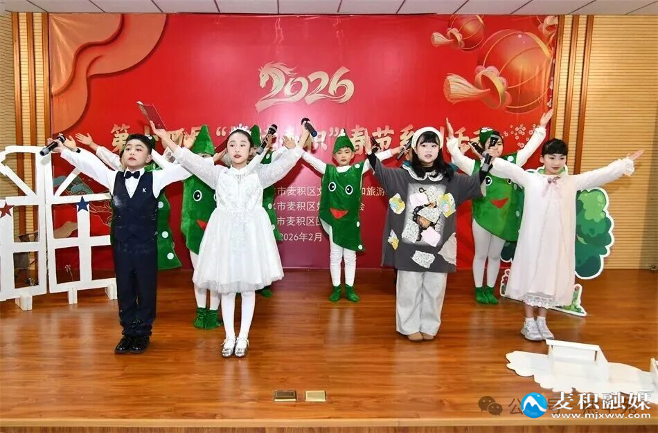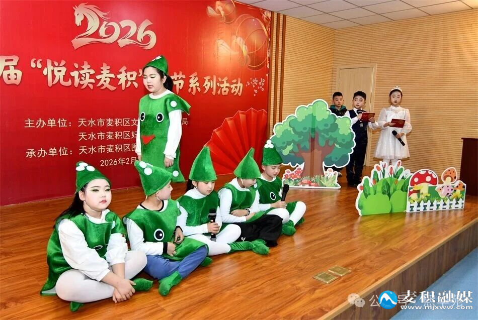 活动现场暖意融融、氛围热烈,文艺展演轮番上演、精彩纷呈。绘本剧《一个豆荚里的五粒豆子》童趣盎然,用生动演绎带领观众走进奇妙的书籍世界;诵读节目《花木兰》《陇韵辉煌》《敦煌壁画飞天小仙》兼具家国情怀与陇原韵味,声情并茂的朗诵尽显经典文化的博大精深;歌曲《阳光路上》、舞蹈《小花神》、集体舞《小美满》活力四射,用欢快的旋律与优美的舞姿传递新春喜悦,真正实现了书香缀年味、艺韵润人心,充分彰显了麦积区深厚的文化魅力与蓬勃的新春活力。