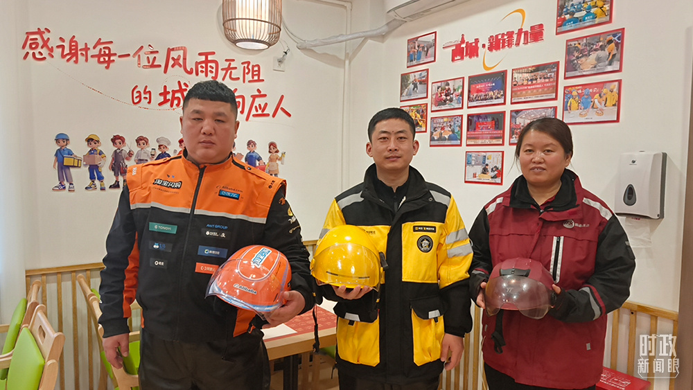 △新街口父母食堂里休息的快递工作人员。(总台央视记者钟信伟拍摄)