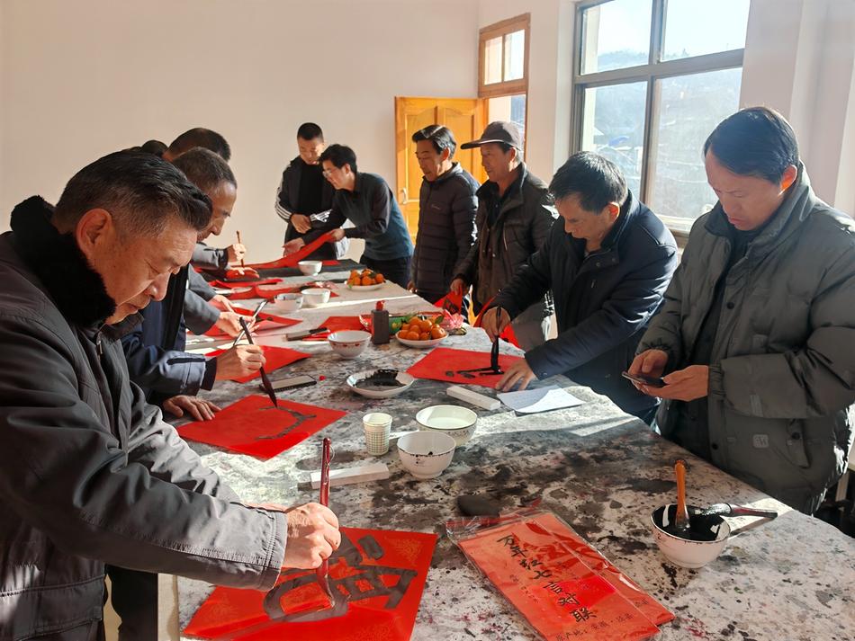 新天水讯 据武山县融媒体中心消息 岁寒情更浓,牵挂暖人心。传统的新春佳节即将来临,为弘扬传统文化,营造欢乐祥和的新年氛围,武山县委组织部邀请县书法家协会8名书法家深入帮扶村山丹镇硬山村开展“书法进乡村”活动,为全村群众送上了一份沉甸甸、红彤彤的文化“年货”。