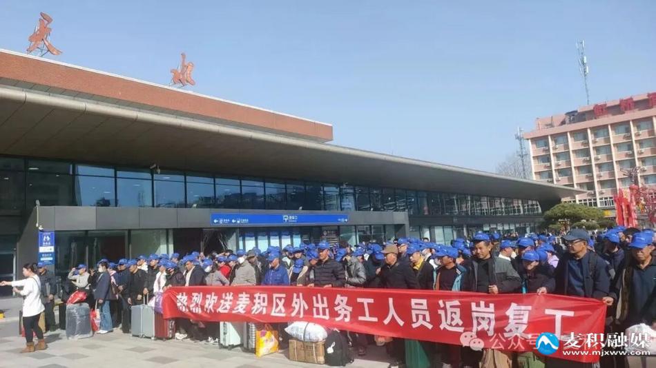 新天水讯 据麦积区融媒体中心消息 2月21日,麦积区人社局联合甘肃陆汇人力资源有限公司,在天水火车站举行点对点有组织劳务输转集中出发仪式,500余名务工人员搭乘12辆统一大巴,奔赴江苏、浙江、重庆等地开启务工增收新征程。