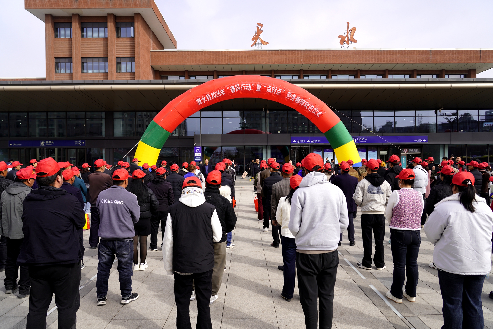新天水讯 春启新程,各地持续做好农民工返岗复工服务保障工作。2月22日上午,清水县在天水火车站举行2026年外出务工人员集中欢送仪式,通过专列包车厢“点对点”输送的方式,免费护送202名农民工前往浙江、江苏、上海等地返岗,助力务工人员开启新一年增收致富之路。