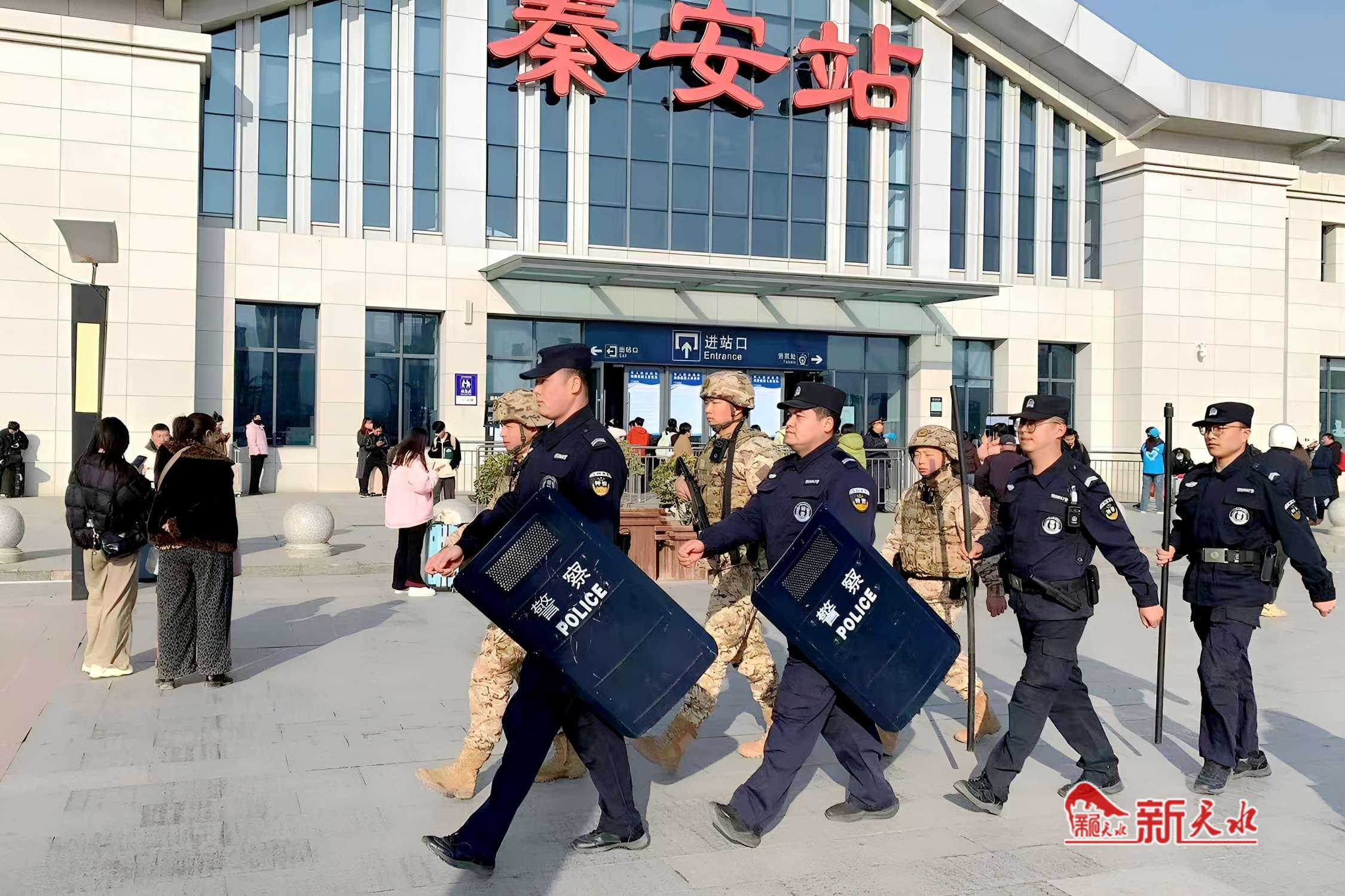在火车站、客运站等人流高度密集区域,秦安公安强化显性用警,联合武警、铁路警方等部门启动联勤联动机制,严格落实安全检查、秩序维护、人流疏导等各项措施,加大对进出站口、候车大厅等重点部位的巡逻防控频次,全力保障旅客进出站通道顺畅有序。通过多警种协同联动、立体化防控布局,实现重点区域安保工作无缝衔接、高效运转,以严密防线和高效协作,全力守护每一位旅客平安出行,用坚守的身影筑起返程路上的温暖屏障。