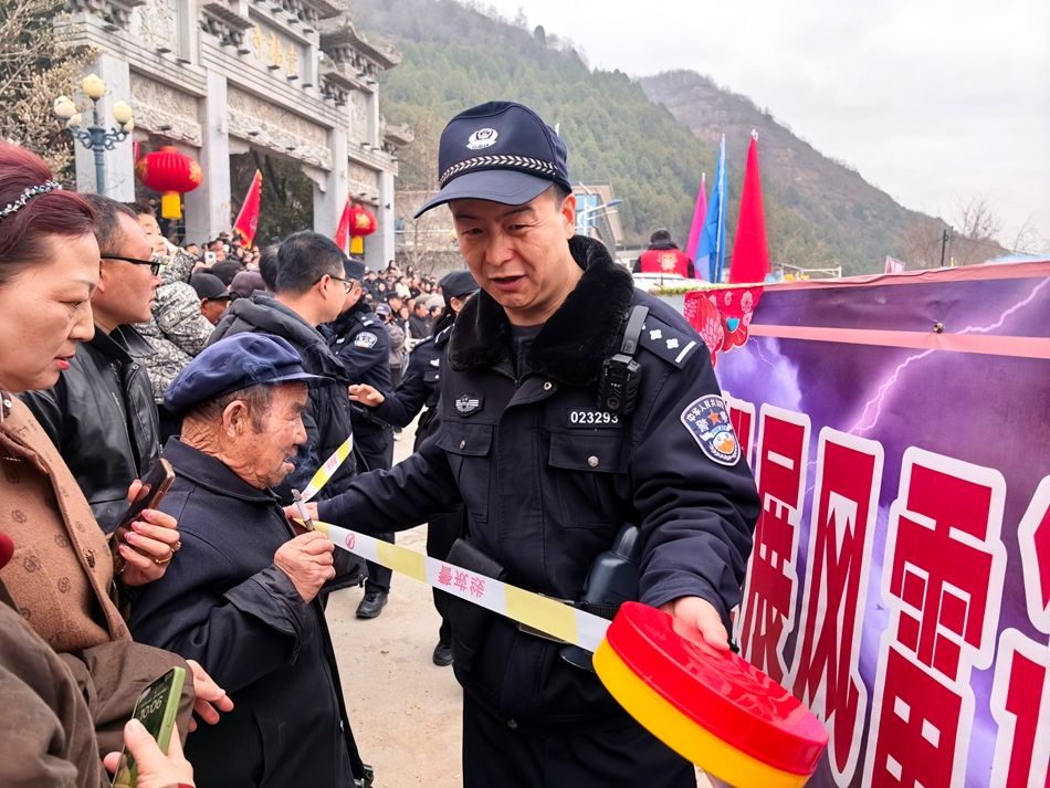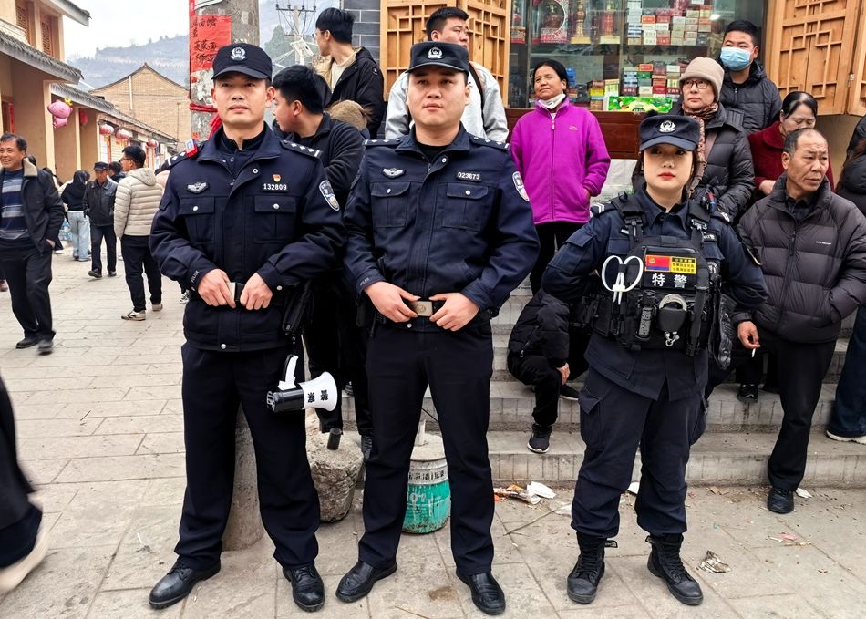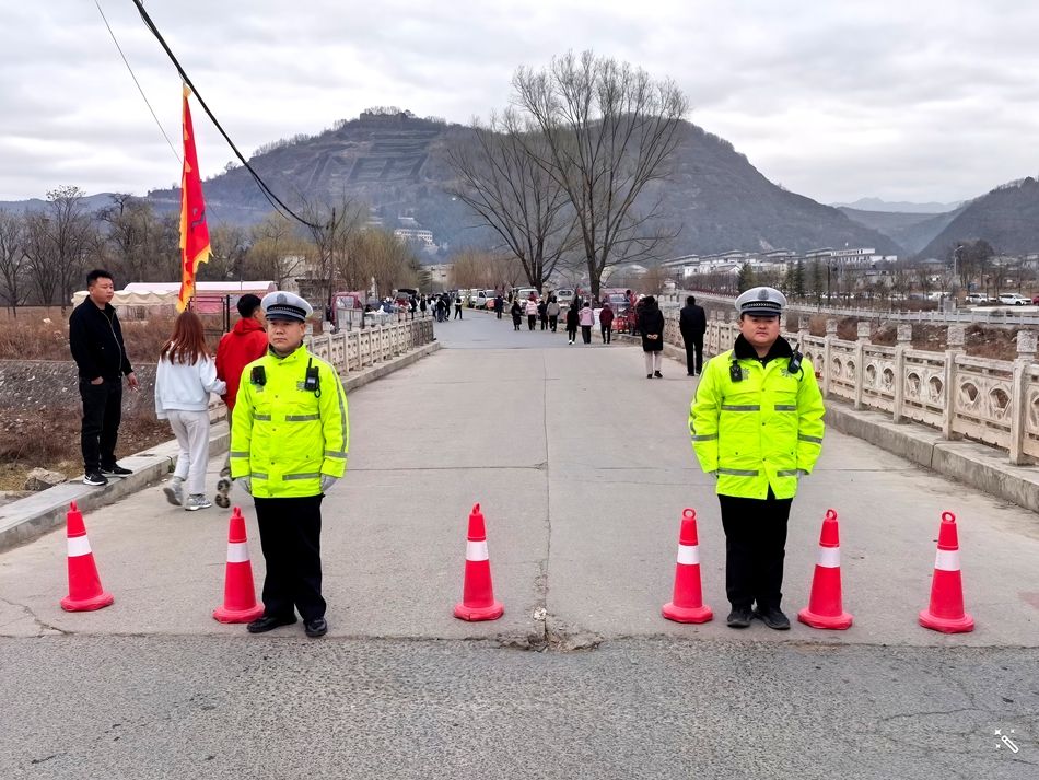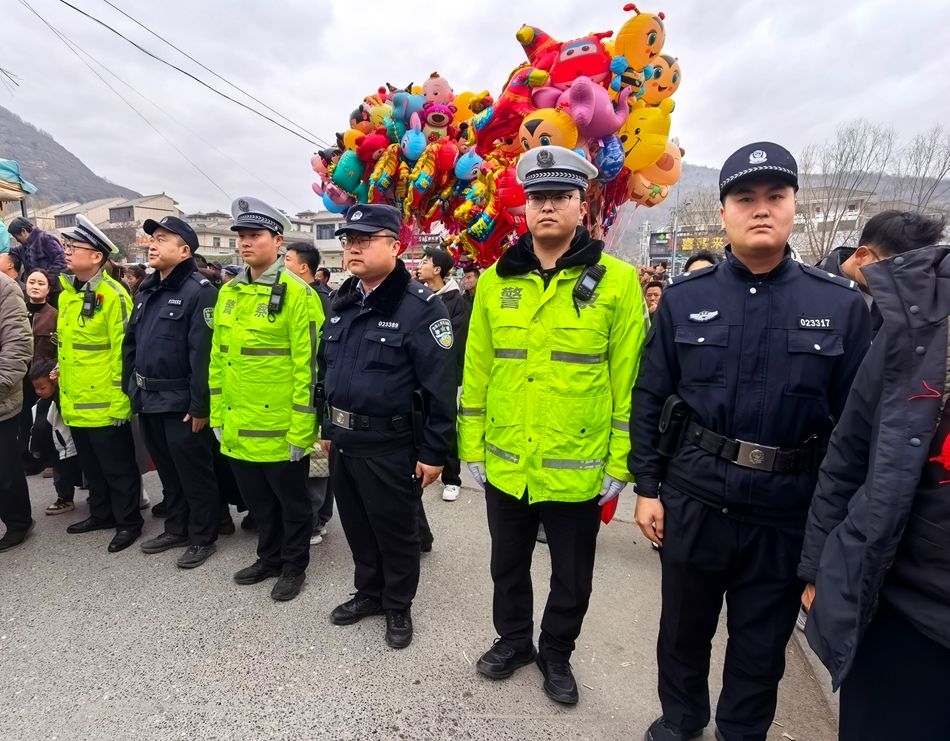 活动当天,全体执勤民辅警提前到岗履职,在社火表演起点、终点及沿途重点路口、关键部位,采取“定点值守+流动巡逻”相结合模式,全力维护现场秩序。交管部门对表演路段实施临时交通管制,疏导分流过往车辆,保障表演队伍通行顺畅与群众出行安全;特警及各派出所警力穿梭密集人流中,密切关注现场动态,快速响应突发情况,热情为群众提供咨询帮助。