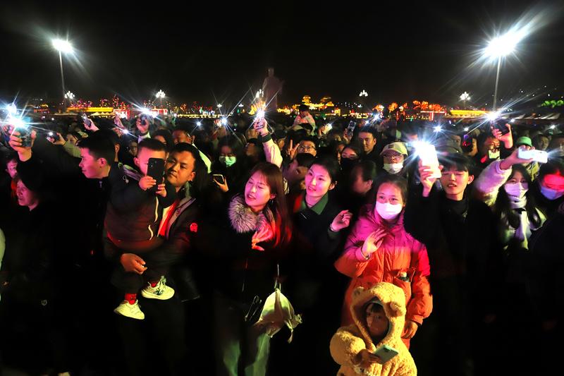 不少观众跟着节拍轻轻摇摆,手中的闪光灯随着音乐律动汇成点点星河,有人举起手机记录精彩瞬间,孩子在人群中穿梭嬉戏,欢声笑语在广场上空回荡。两个小时的演出时间里,轩辕广场始终洋溢着热烈欢快的节日气息。