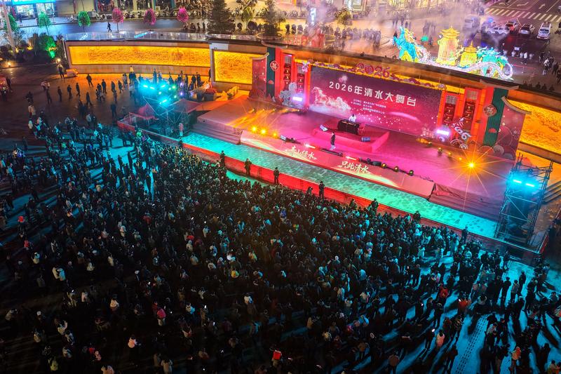 新天水讯 据清水县融媒体中心消息 2月25日晚,农历丙午年正月初九,“青山绿水·只此清水”2026年清水县乐动之夜在县轩辕广场精彩上演,为市民游客献上了一场活力四射的视听盛宴。