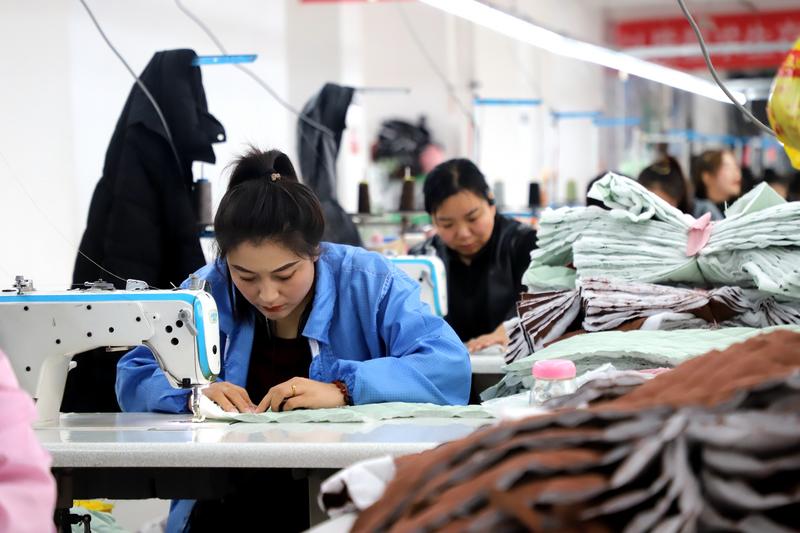 与此同时,清水县轩蔓服装有限公司的厂房内,同样是一派热火朝天的生产景象。缝纫机“嗒嗒”声此起彼伏,奏响奋进的节拍,工人们专注地裁剪、缝制、整烫,一件件设计精良的棉服、羽绒服在流水线上逐步成型,经过严格质检后将打包发往俄罗斯。
