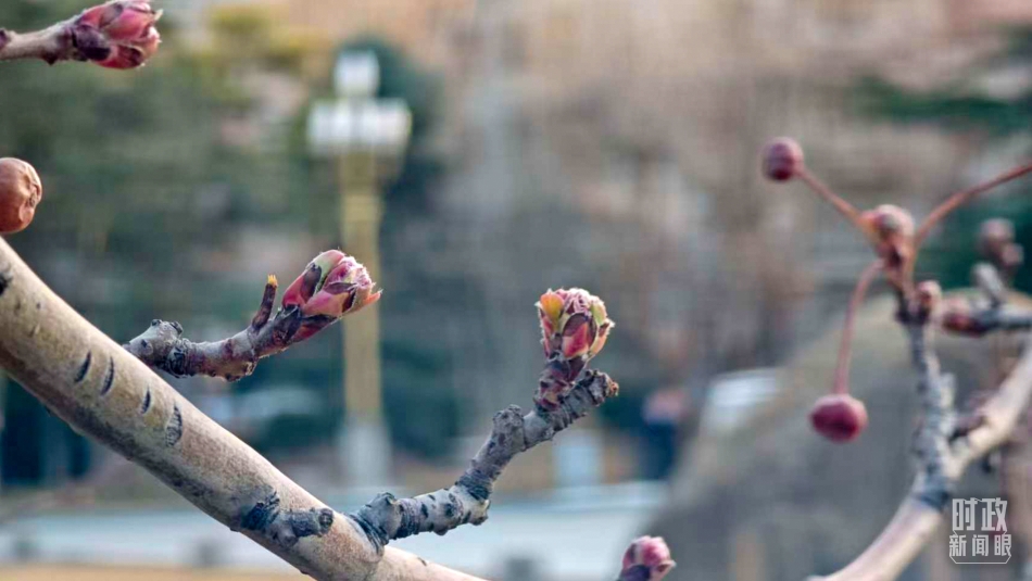 △北京友谊宾馆,含苞待放的初春景象。(总台国广记者蔡靖骉拍摄)
