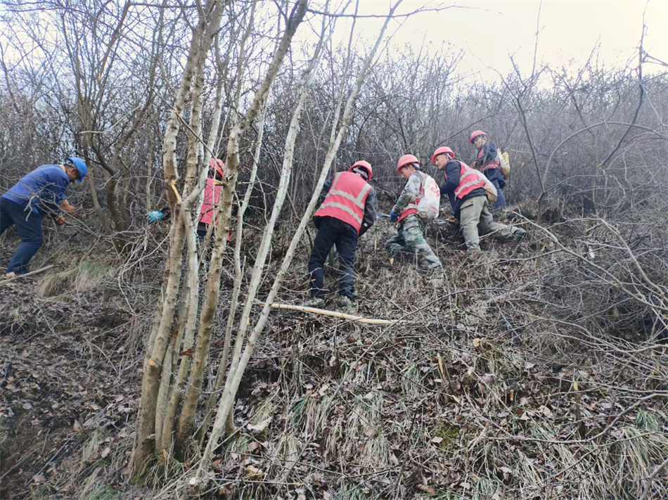 施工现场一派火热攻坚景象,施工人员对现场的枯死、濒死林木开展疏伐清理,优化林分结构;对中度退化林分开展修枝、割灌、除草等抚育措施改善通风透光条件;对林中空地、稀疏区域补植乡土树种。300余名专业施工人员同步进场作业,在皂郊镇、关子镇、太京镇、玉泉镇等重点区域,紧锣密鼓推进全流程施工,以精细化作业推动林相提质增效,以实干实效实现新春生态建设“开门稳、开门红”。