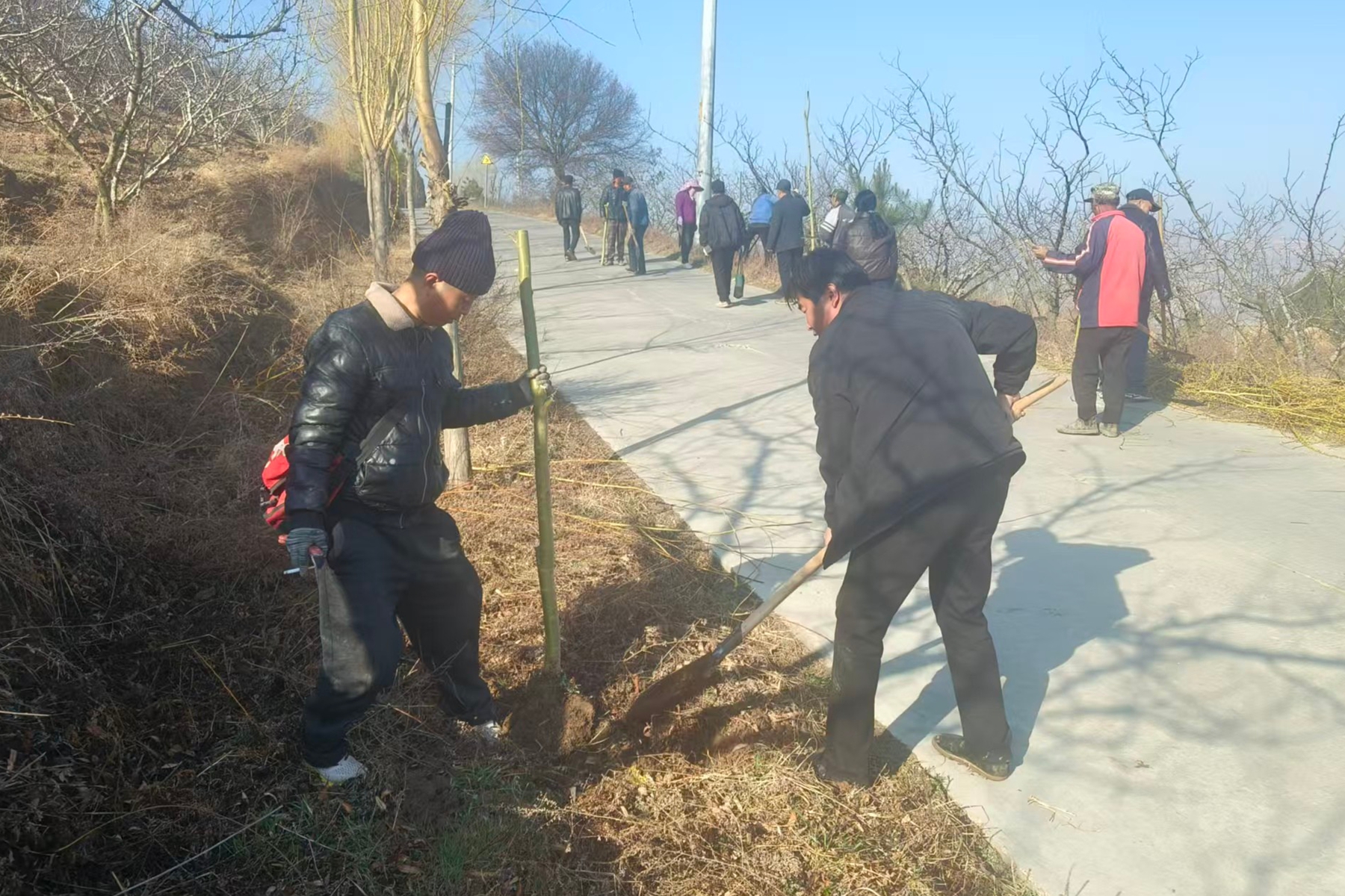 活动现场,大家热情高涨、分工协作,配合默契。严格按照“三埋两踩一轻提”规范栽种,确保树木栽一棵、活一棵、绿一片。此次栽种补植了部分村庄主干道周边及河道沿岸等绿化区域,进一步完善了“路旁、村旁、水旁、宅旁”四旁绿化格局。