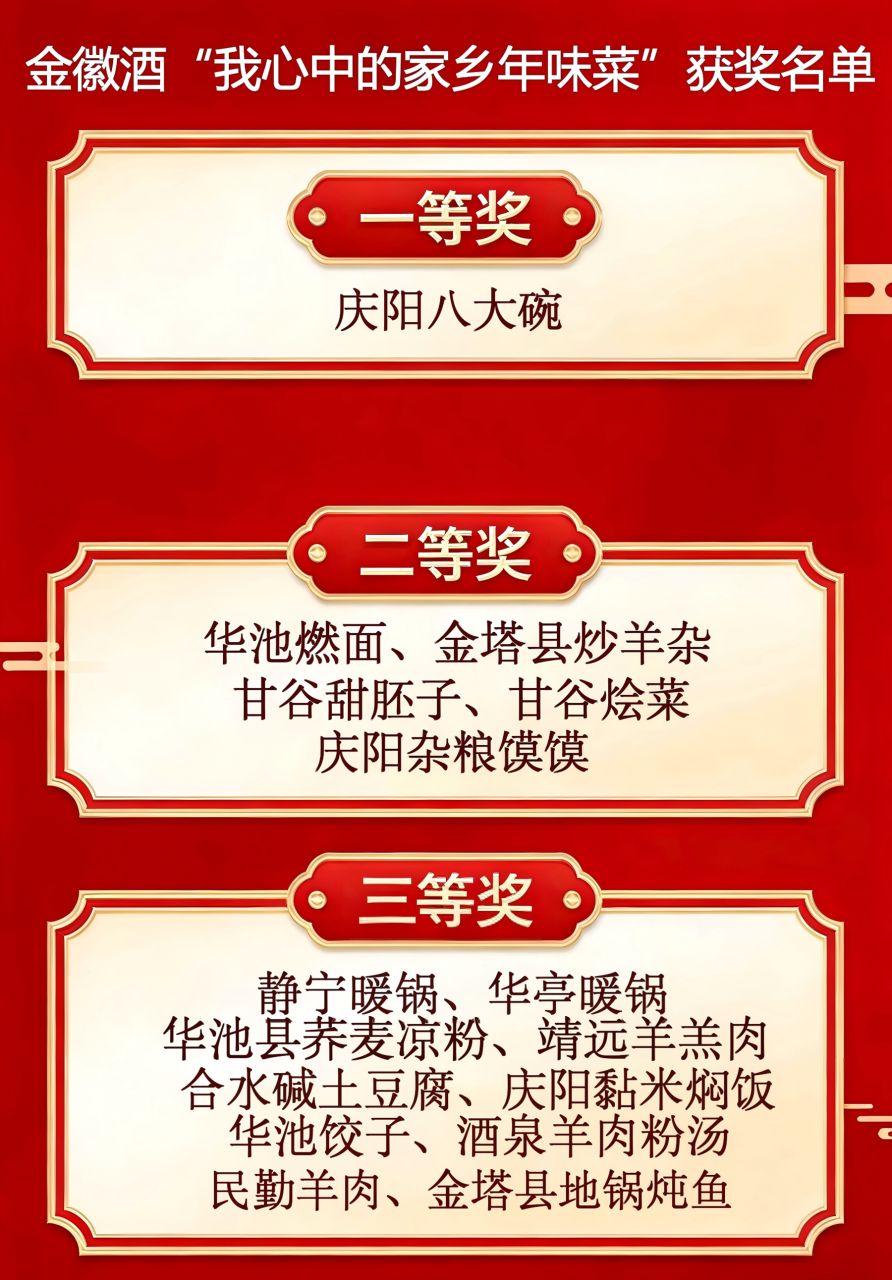 自2026年2月活动正式启动以来,“寻找心中的年味”2026金徽酒家乡年味菜视频有奖征集活动得到了广大读者与网友的积极响应和热情参与,各类优质作品从陇原大地的四面八方汇聚而来。创作者们以镜头为笔、以美食为墨,生动定格下陇原大地各具特色的浓郁年味瞬间:金塔炒羊杂的鲜香扑鼻、庆阳杂粮馍馍的质朴醇香、靖远羊羔肉的鲜嫩多汁、甘谷甜胚子的清甜回甘、甘谷烩菜的暖香醇厚……每一道陇原年菜,都是时光沉淀的味觉记忆,是这片土地最鲜活的文化注脚,更是漂泊游子心中永不褪色的家乡牵挂。