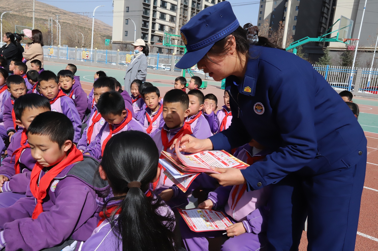 新天水讯 据武山县融媒体中心消息 春回大地启新程,安全护航伴成长。为筑牢新学期校园消防安全防线,提升广大师生消防安全意识和应急自救能力,近日,武山县消防救援大队多点联动,组织宣传人员走进辖区多所学校,以“理论科普+实景演练+实操体验”模式,为同学们送上干货满满的消防安全“开学第一课”,用专业力量守护少年儿童平安成长。