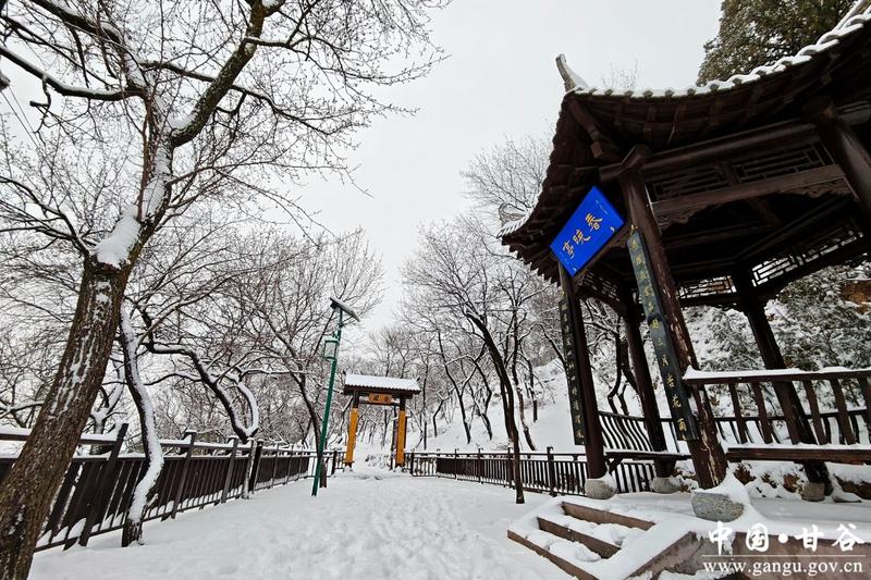 新天水讯 据甘谷县融媒体中心消息 春雪初霁,陇原披银。一场温润春雪悄然覆盖甘谷县天门山景区,漫山琼枝玉树与古亭楼阁交相辉映,勾勒出一幅兼具苍茫与雅致的冬日水墨长卷,引得市民游客纷至沓来,踏雪寻踪,共赏“天门春晓”的别样诗意。