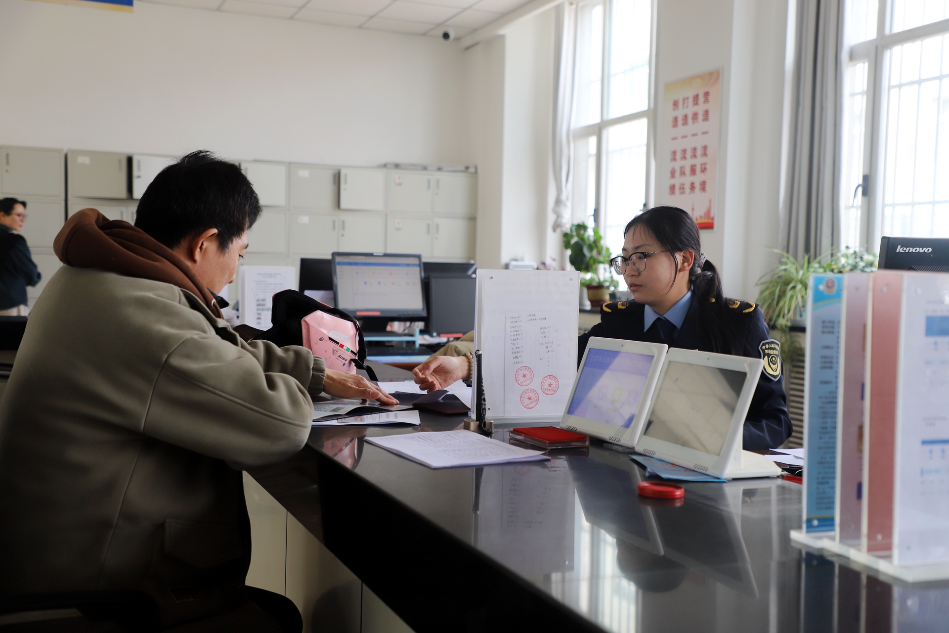 窗口后方的墙壁上,一面写着“和气 耐心 认真 真诚”的锦旗熠熠生辉,无声诉说着清水县政务服务的温度与力度,也见证着各入驻窗口以作风建设为抓手,转作风、提效能、优服务的生动实践。