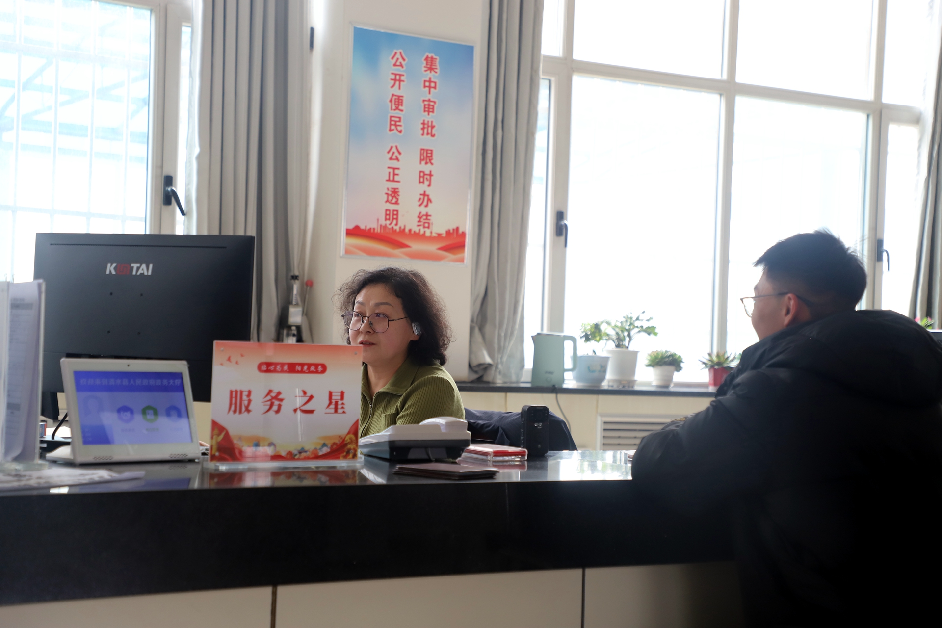 清水县政务服务中心副主任马宁说:“在队伍建设上,通过常态化业务培训、礼仪教育及‘党员示范窗口’创建,夯实服务根基;改革攻坚中,聚焦‘高效办成一件事’,推行‘一窗受理、并联审批’,实现企业开办、不动产登记等涉企事项全程网办率100%,以‘硬作风’跑出‘加速度’,变‘坐等上门’为‘主动问需’,通过‘一把手坐窗口、走流程’强化监督,群众与企业满意度持续高位运行,让‘小窗口’释放‘大效能’。”