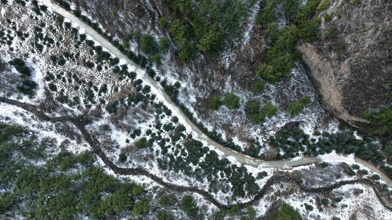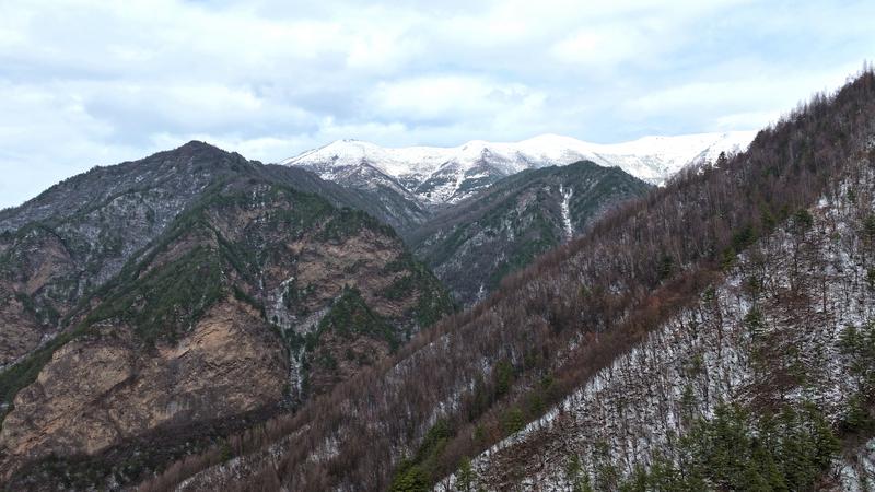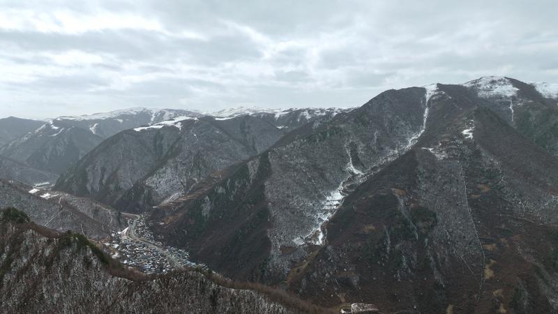 雪落山林,梯田覆白,村落静卧其间。苍松凝雪、溪涧含素,峰峦、松林、步道皆被薄雪轻笼,奇峰裹素、翠柏挂絮,玉树琼枝与红墙古建相映成趣,清雅诗意扑面而来。登高远望,群山如卧牛披雪,层叠梯田与田园村落错落有致,雄浑中透着温婉,尽显陇上雪韵之美。