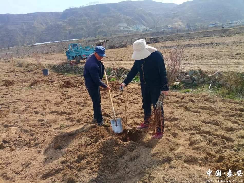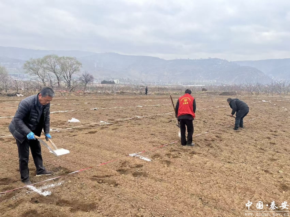 新天水讯 据秦安县融媒体中心消息 春潮涌动农事忙,产业振兴正当时。眼下,秦安县叶堡镇何坪村200亩低质低效老旧果园改造工作正有序推进,现场农户们分工协作、抢抓农时,打点放线、开挖整地、栽植新苗,一派热火朝天的繁忙景象,为乡村产业振兴注入强劲新动能。